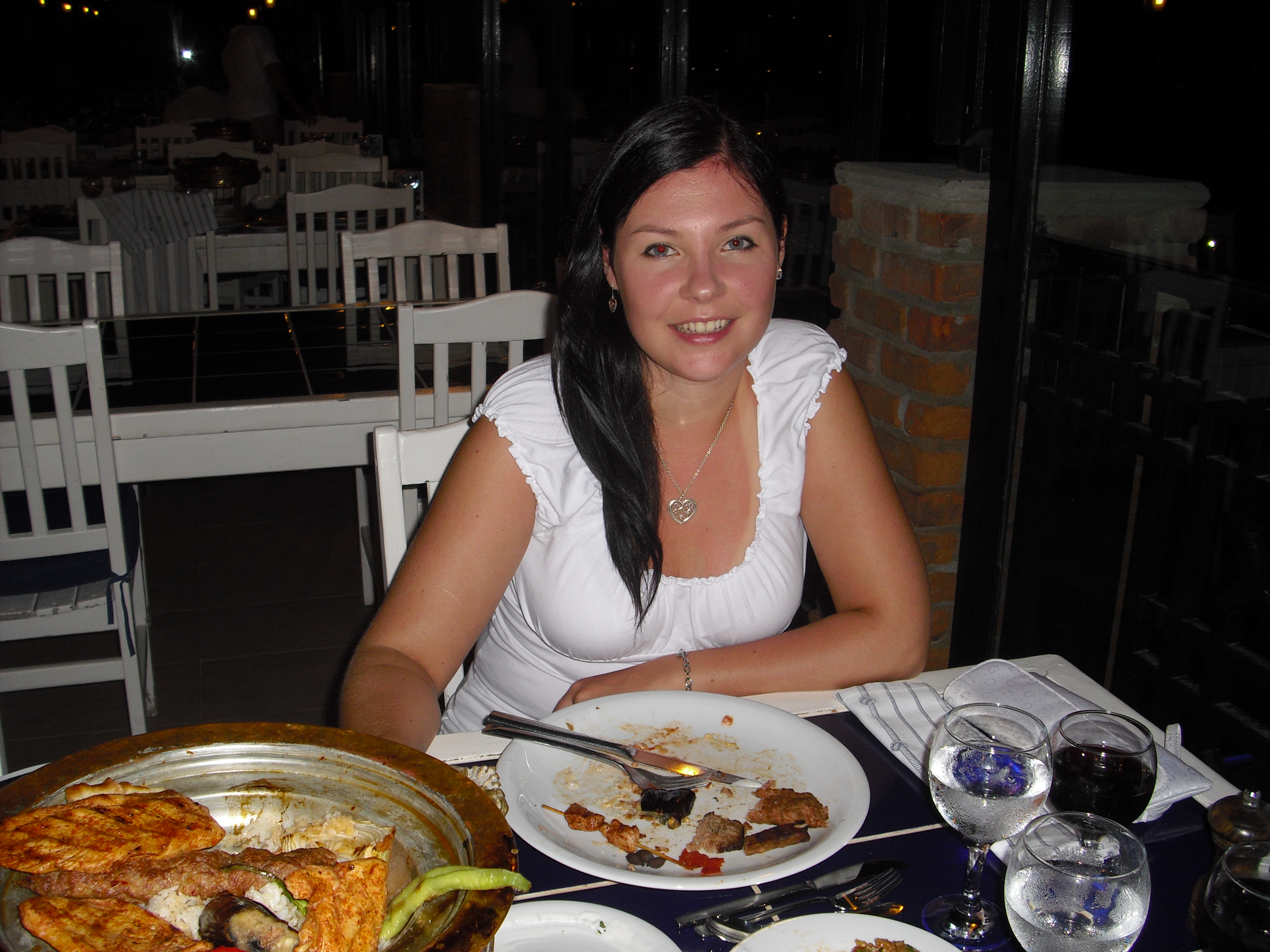 All Inclusive-pakettiin sisältyvä turkkilainen illallinen hotellin kattoterassilla sijainneessa ravintolassa oli kyllä ihan napakymppi. Jos matkustat Turkkiin niin käy testaamassa tuo elämys ihan ehdottomasti, mutta älä suunnittele sille illalle enää muuta tekemistä, koska tuon illallisen jälkeen ei sitten tarvitsekaan muuta syödä enää loman aikana! Illallinen alkoi alkupaloilla eli turkkilaisilla mezeillä, joita oli useita erilaisia. Pääruuaksi pöytään kannettiin iso padallinen riisiä, missä päällä oli erilaisia kebabeja sekä paistettua kanaa. Jälkiruuaksi meille tarjottiin toinen toistaan makeampia sokeriliemessä kastettuja baklavia, vanukasta sekä jäädykettä. Illallinen oli todella herkullinen.