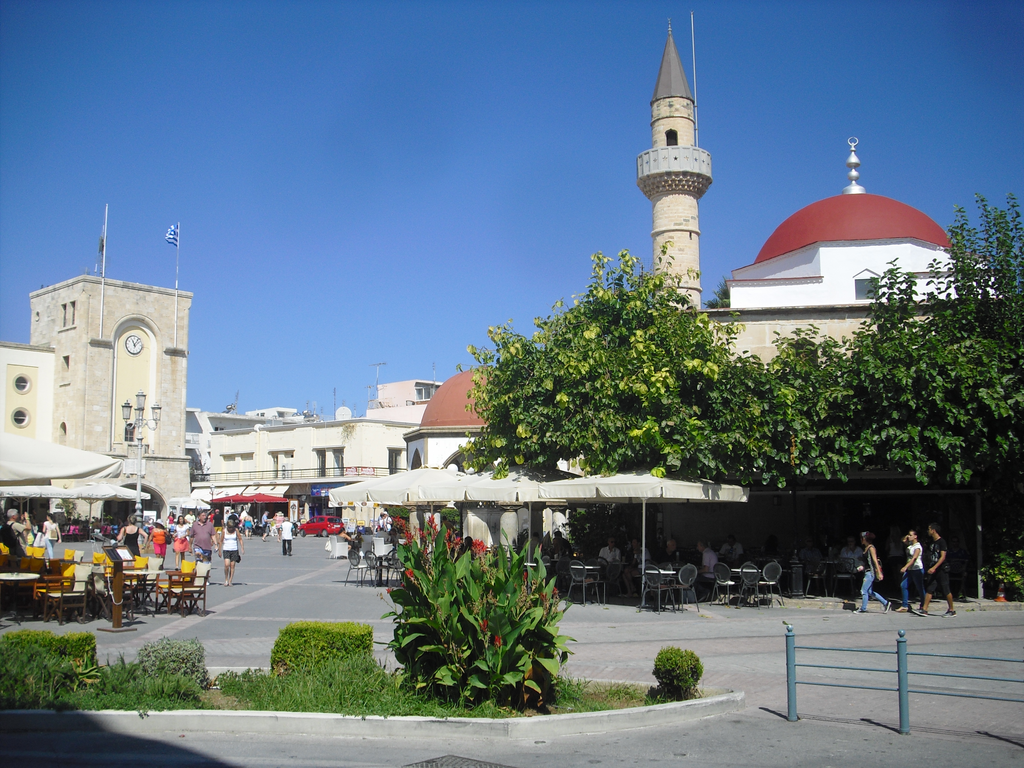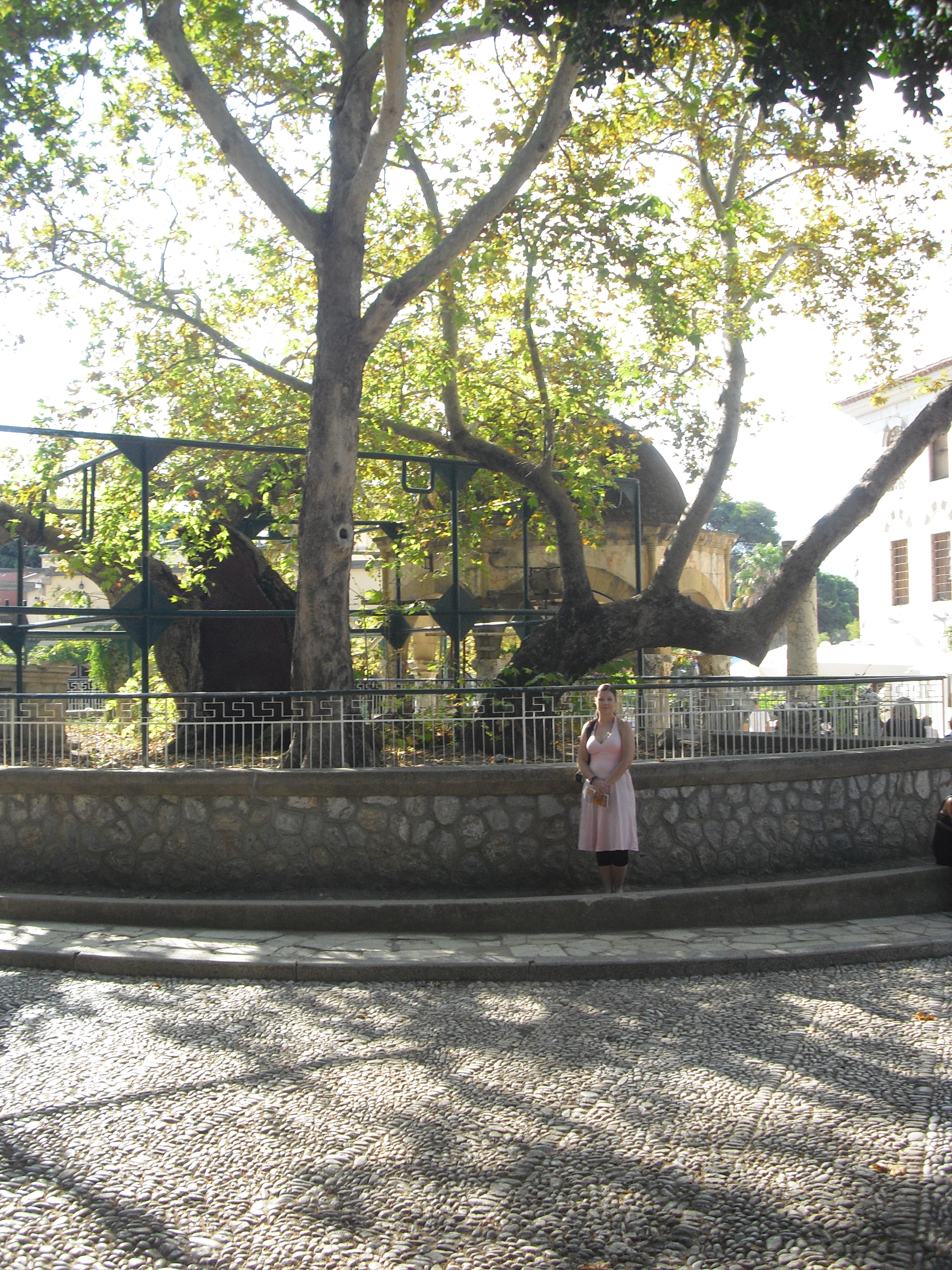 Shoppailujen lomassa tuli kierrettyä myös aivan Kosin keskustassa sijaitsevia raunioalueita. Nähtävää riittää Kosilla paljon. Mieleenpainuvin nähtävyys oli varmastikin Hippokrateen plataanipuu, jonka oksat ja lehvästö levittäytyy yli 12 metrin laajuudelle. Puu on niin painava ja vanha, että se on tuettu massiivisin telinein. Hippokrateen sanotaan opettaneen tuon kyseisen puun varjossa. Mielenkiintoista olisi ollut käydä myös saaren kenties tunnetuimmalla nähtävyydellä eli Asklepionin muinaisella sairaalalla, mutta koska se sijaitsee hieman Kosin keskustan ulkopuolella vuoristossa, niin emme sinne tällä kertaa kerinneet.