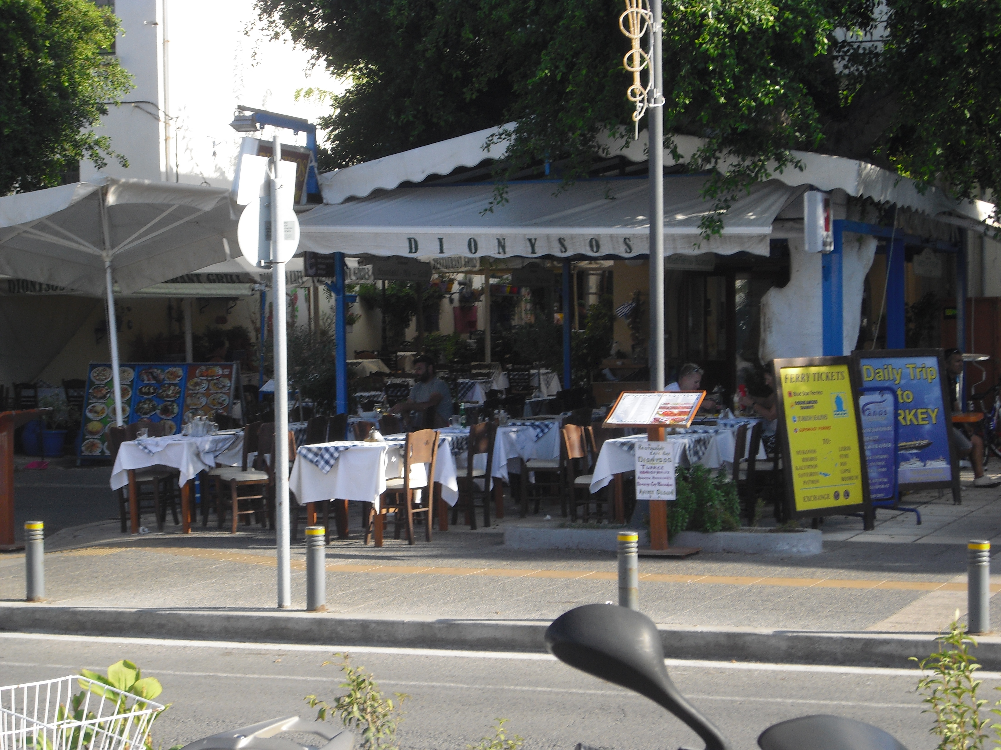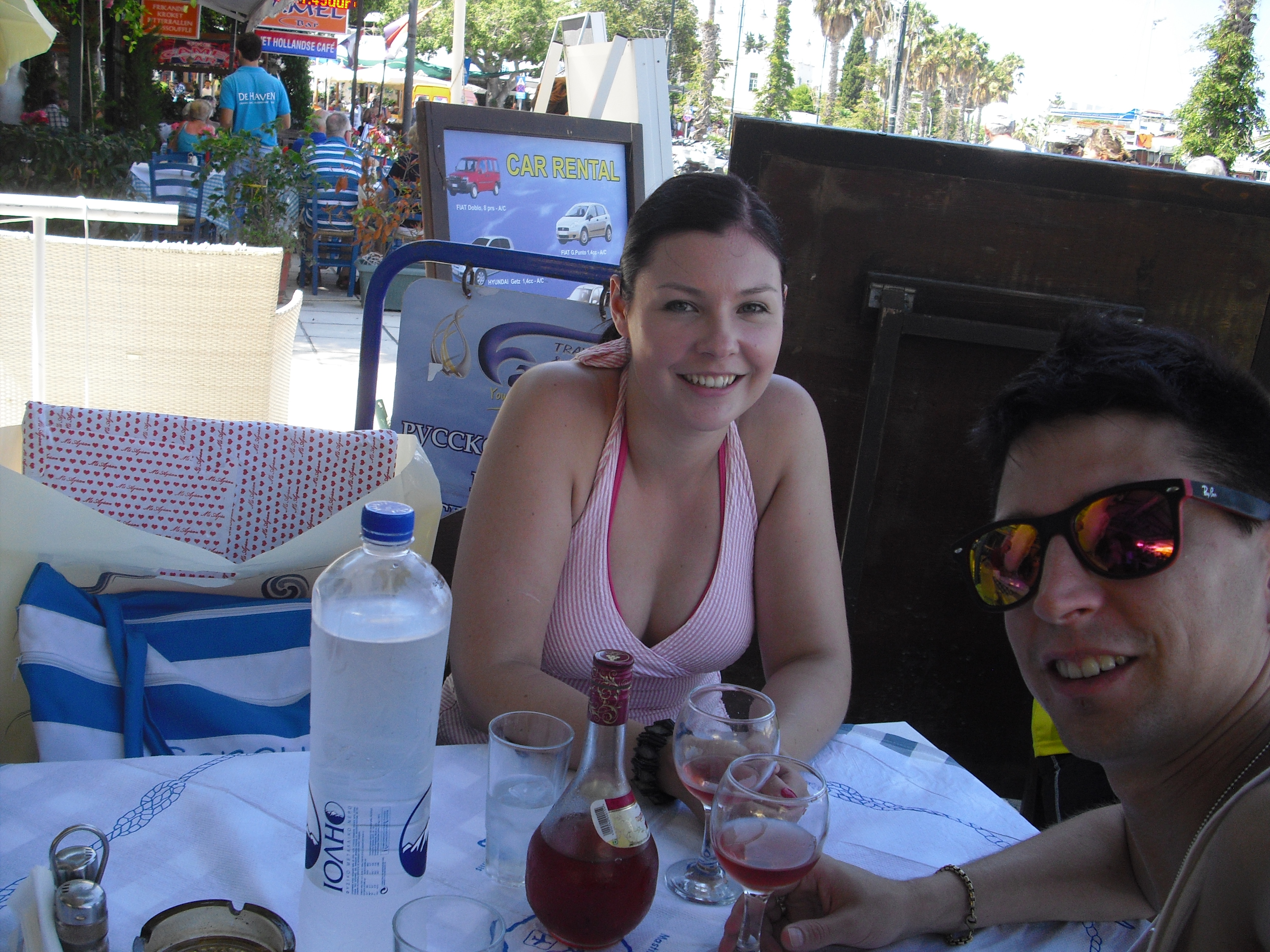 Shoppailukierroksen jälkeen söimme lounasta Kosin pienvenesataman edustalla sijainneessa Dionysos-ravintolassa. Itse testasin moussakan ensimmäistä kertaa elämässäni ja Lari tilasi souvlaki-annoksen eli perinteisiä kreikkalaisia lihavartaita. Olimme todella tyytyväisiä annoksiimme. Voisin jopa sanoa, että tuo oli ehkä elämäni täydellisin lounas! Kreikassa siis todella kannattaa nauttia herkullisesta ruuasta ja jos olet menossa Kosille niin käy ihmeessä testaamassa tuo ravintola.
