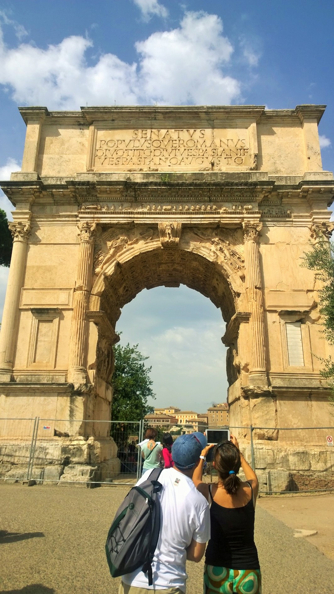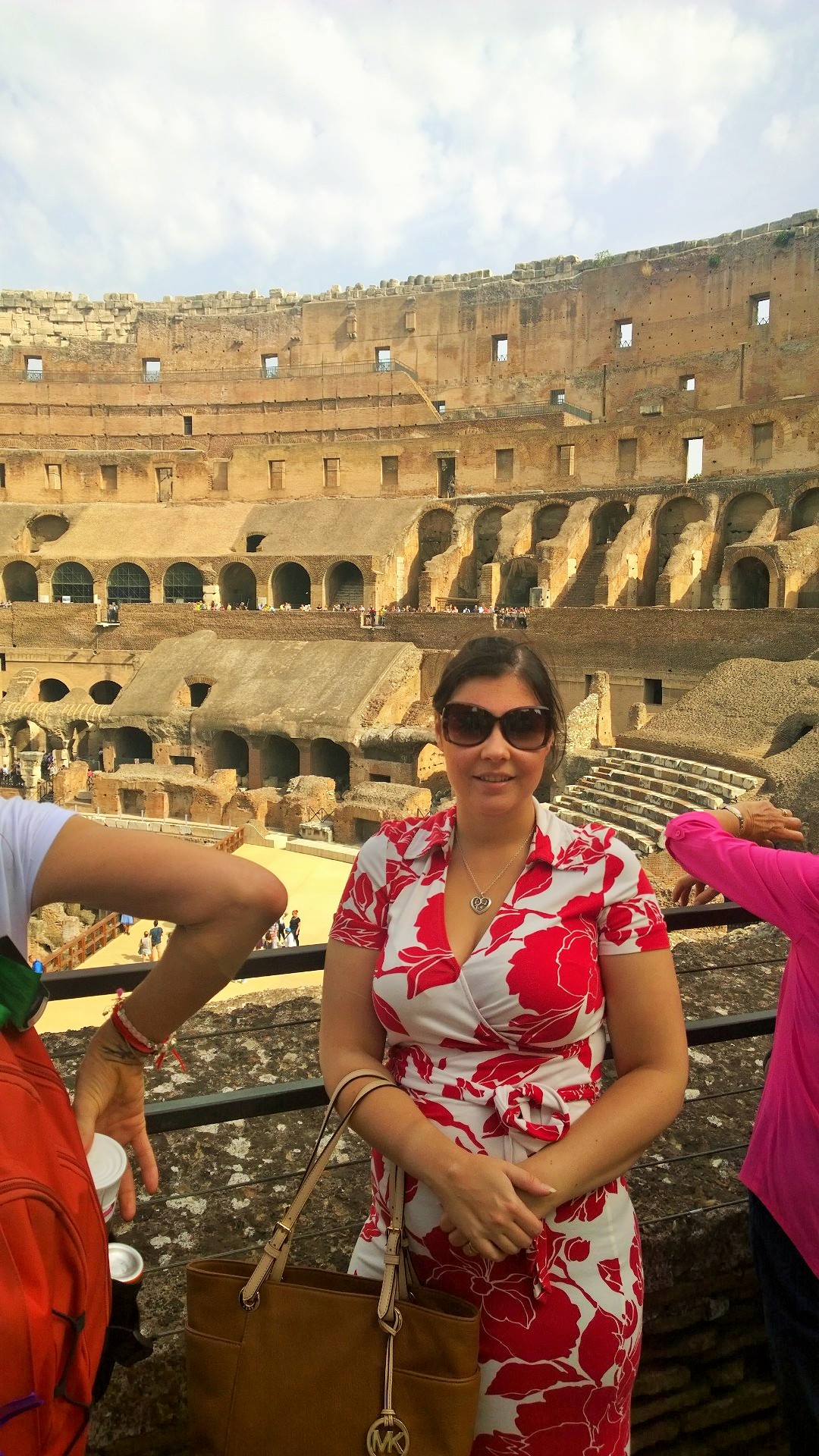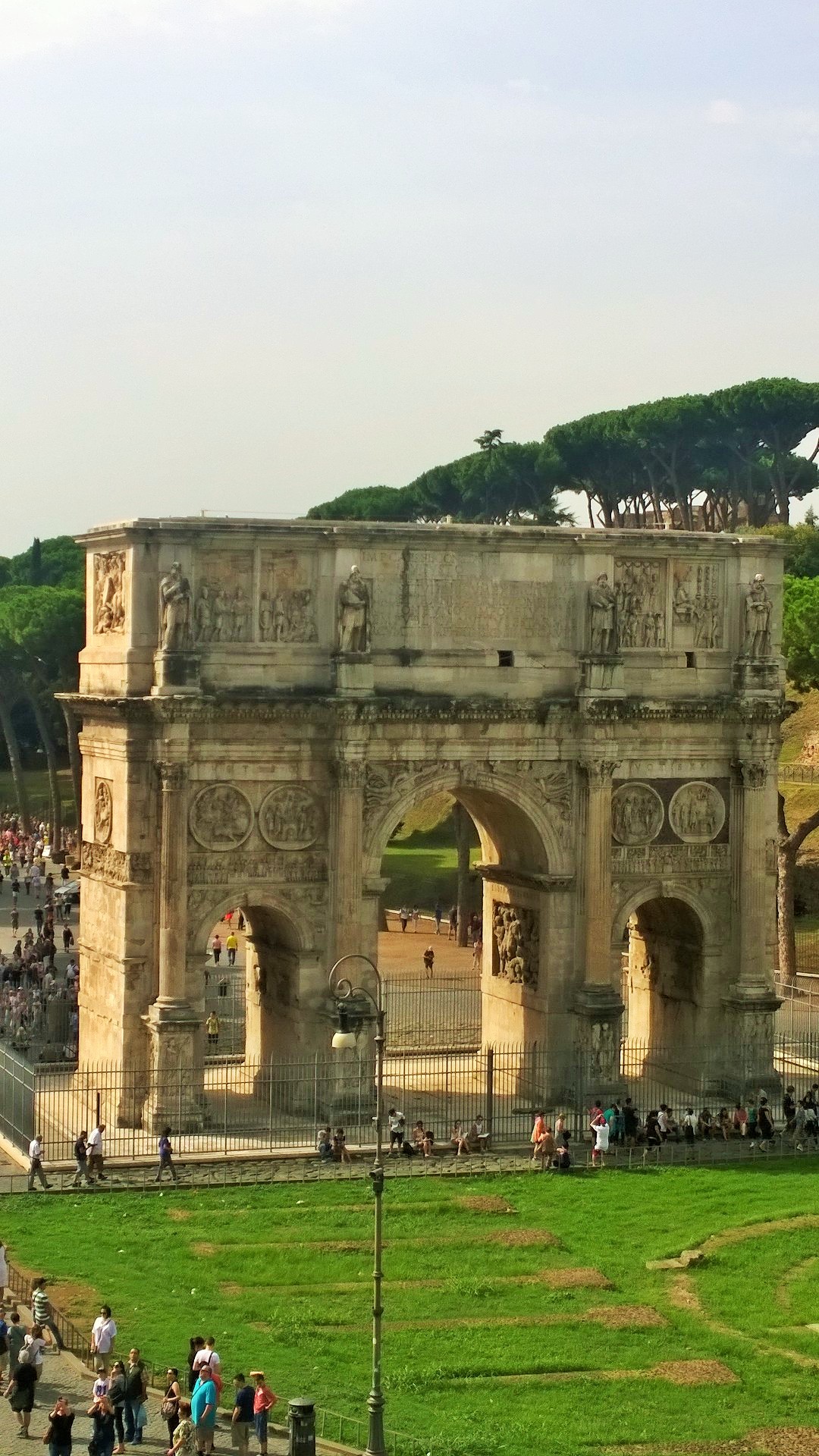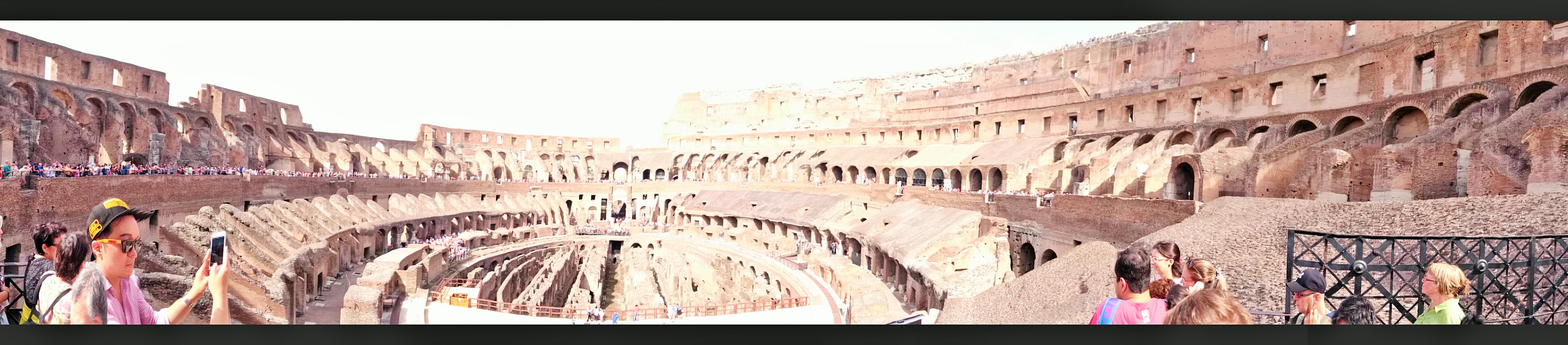 Colosseumille kannattaa myös suunnata mahdollisimman aikaisin, koska jono tännekin kasvaa päivän edetessä aina vain pidemmäksi. Me olimme Colosseumillakin aika ajoissa aamulla kymmenen maissa emmekä olleet tännekään ostaneet ennakkolippuja, joilla pääsisi jonojen ohi. Nyt kuitenkin kävi niin, että tähän aikaan aamusta ennakkolippulaisten jono oli huomattavan pitkä ja liputtomat lippuluukun kautta sisään menevät pääsivät taas lähes jonottamatta suoraan sisään Colosseumille. Lippu maksoi 12 euroa/aikuinen ja samalla lipulla pääsi saman päivän aikana myös Forum Romanumille ja Palatinukselle. Colosseumin vieressä sijaitseva suurin säilynyt riemukaari eli Konstantinuksen riemukaari on myös komea näky. Colosseum oli jälleen vaikuttava näky ja ennen vierailua kannattaakin tutustua paikan rajuun historiaan, jotta tietää mitä kaikkia kauheuksia Colosseumin pitkän historian aikana noiden jylhien seinien sisäpuolella onkaan tapahtunut. Colosseum on valmistunut vuonna 80 jaa ja sinne mahtui hurjat 73 000 katsojaa.
