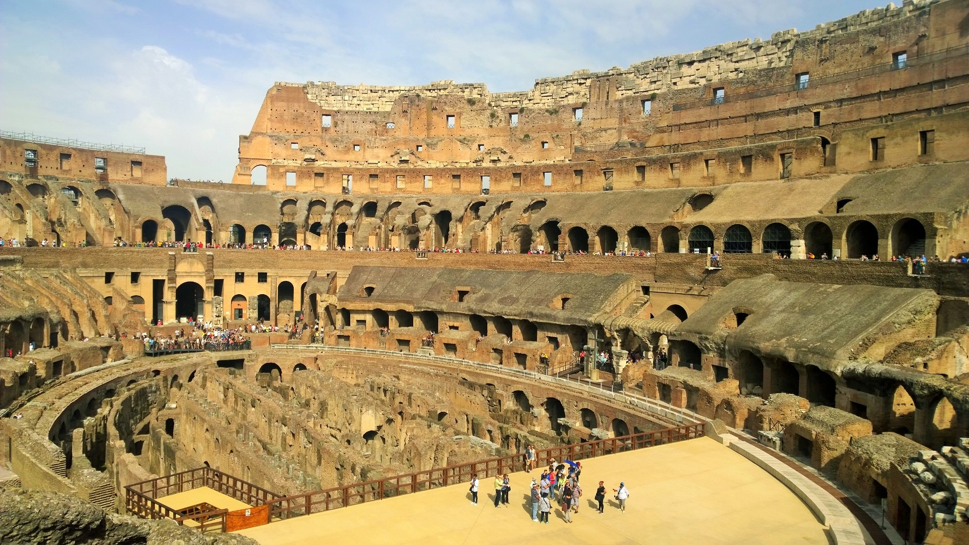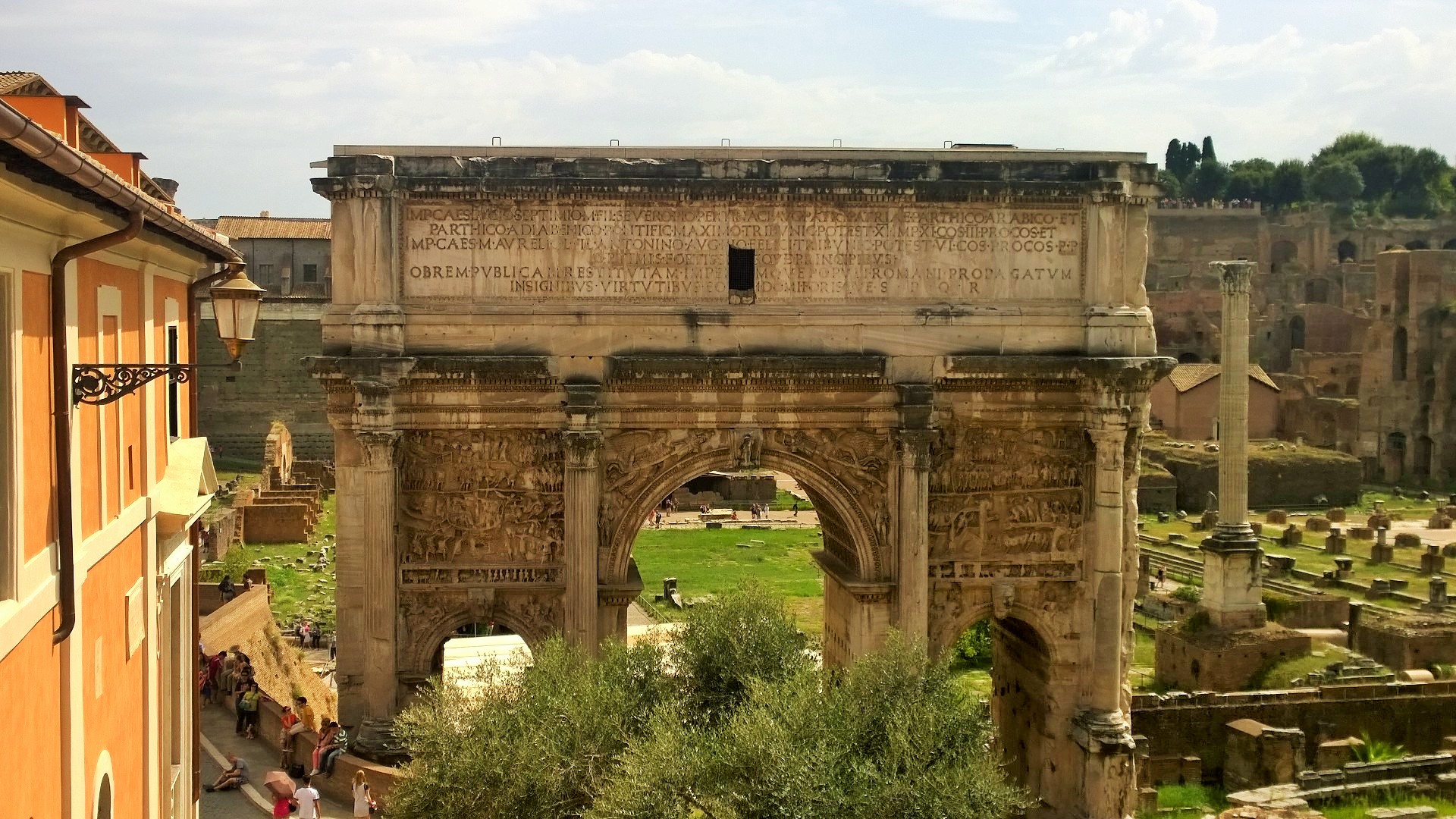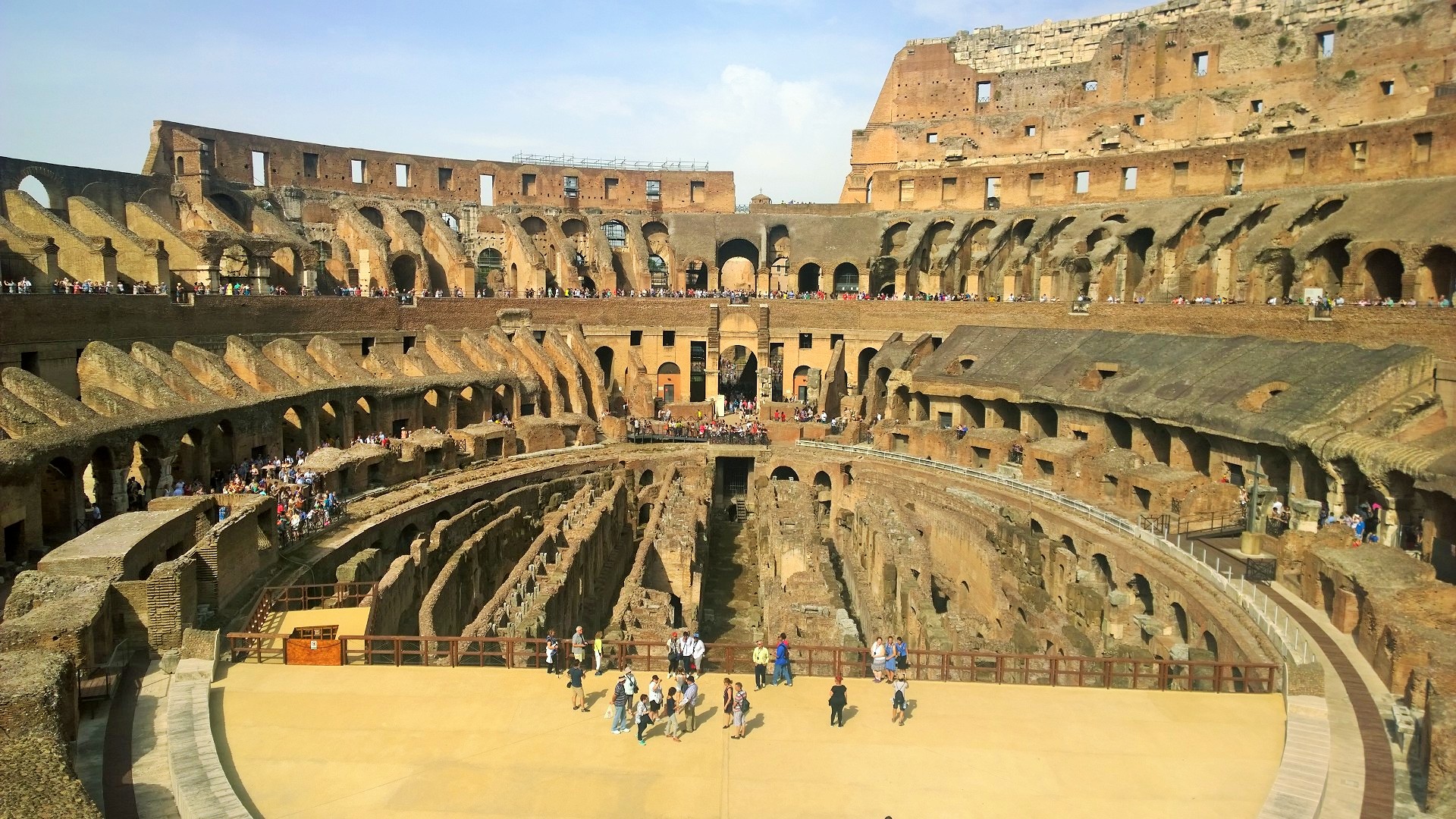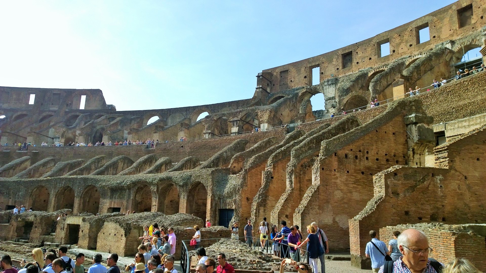 Colosseumille kannattaa myös suunnata mahdollisimman aikaisin, koska jono tännekin kasvaa päivän edetessä aina vain pidemmäksi. Me olimme Colosseumillakin aika ajoissa aamulla kymmenen maissa emmekä olleet tännekään ostaneet ennakkolippuja, joilla pääsisi jonojen ohi. Nyt kuitenkin kävi niin, että tähän aikaan aamusta ennakkolippulaisten jono oli huomattavan pitkä ja liputtomat lippuluukun kautta sisään menevät pääsivät taas lähes jonottamatta suoraan sisään Colosseumille. Lippu maksoi 12 euroa/aikuinen ja samalla lipulla pääsi saman päivän aikana myös Forum Romanumille ja Palatinukselle. Colosseumin vieressä sijaitseva suurin säilynyt riemukaari eli Konstantinuksen riemukaari on myös komea näky. Colosseum oli jälleen vaikuttava näky ja ennen vierailua kannattaakin tutustua paikan rajuun historiaan, jotta tietää mitä kaikkia kauheuksia Colosseumin pitkän historian aikana noiden jylhien seinien sisäpuolella onkaan tapahtunut. Colosseum on valmistunut vuonna 80 jaa ja sinne mahtui hurjat 73 000 katsojaa.