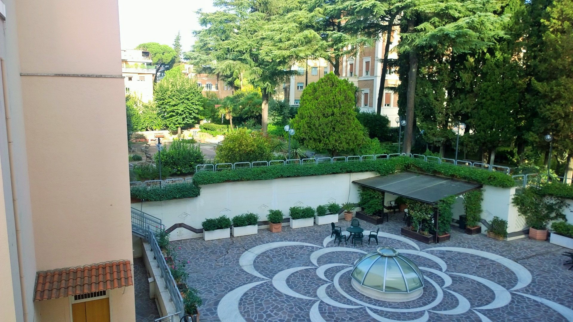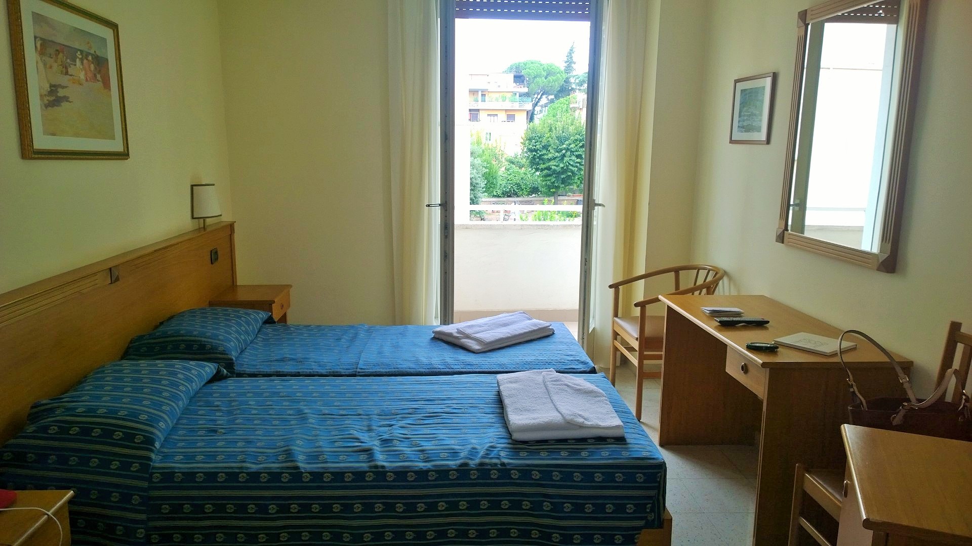 Roomastahan löytyy majoitusta joka lähtöön, mutta majoitusta varatessa kannattaa ottaa muutama asia huomioon. Rooman keskusta on todella meluinen, joten herkkäuniselle varmasti parempi vaihtoehto löytyy hieman keskustan ulkopuolelta. Lisäksi Rooman keskustasta voi olla vaikea löytää hyvää ravintolaa, koska tarjolla on myös paljon huonoja vaihtoehtoja. Todennäköisesti paremmat ravintolat löytyvät hotellin läheisyydestä, mikäli varaat majoituksen keskustan ulkopuolelta. Me majoituimme Trasteveressä Villa Maria –nimisessä hotellissa. Paikan omistavat nunnat ja tämä majoitus oli kyllä napakymppi. Huoneet olivat tilavat ja siistit, kuten myös muutenkin hotelli oli oikein siisti. Mitään ylimääräistä hienostelua hotellissa tai sen huoneissa ei ollut, kuten ei tarvitsekaan niin edullisella hinnalla, mitä mekin hotellista maksoimme. Huone maksoi 37,50e/yö/hlö ja tämän päälle tuli roomalaiseen tapaan toki kaupunkivero, joka tässä majoituksessa oli 3,5e/yö/hlö. Majoitukseen sisältyi aamiainen, joka sisälsi leipää, juustoa, leikkeleitä, muroja, mysliä, hedelmiä, jugurttia, makeita leivonnaisia kuten marmeladilla täytettyjä croissantteja sekä kahvia, teetä ja mehua. Hotellilla on myös viihtyisä sisäpiha-alue sekä erittäin avulias ja ystävällinen henkilökunta, joka muun muassa opasti meitä todella kattavasti bussien käytössä sekä lähellä olevista palveluista ja ravintoloista heti, kun saavuimme hotellille.