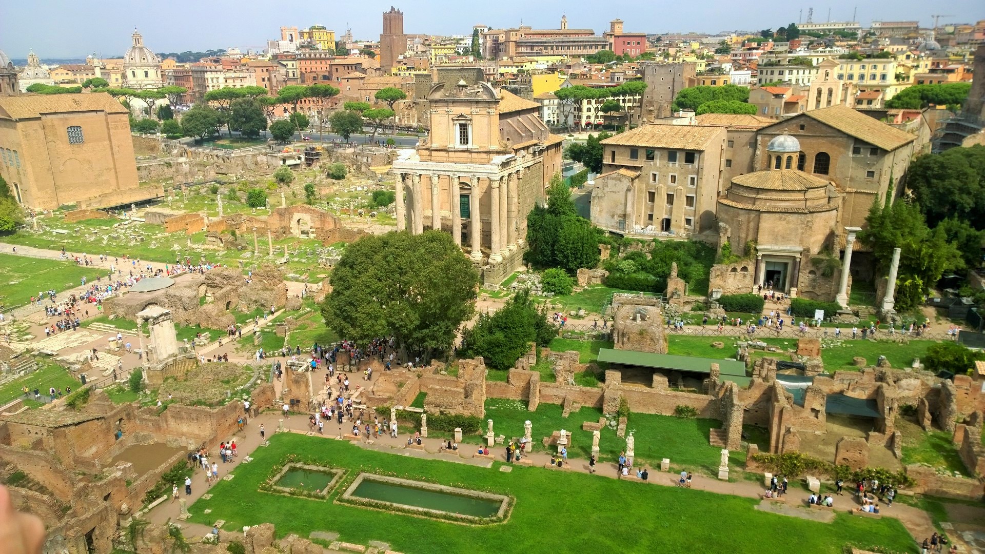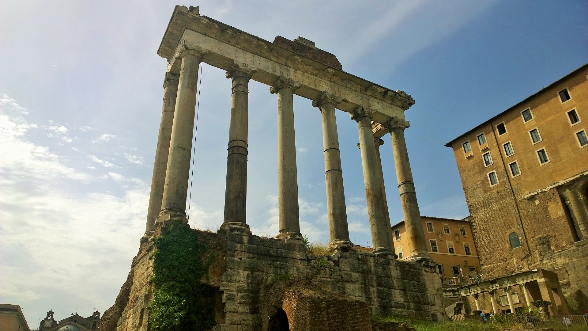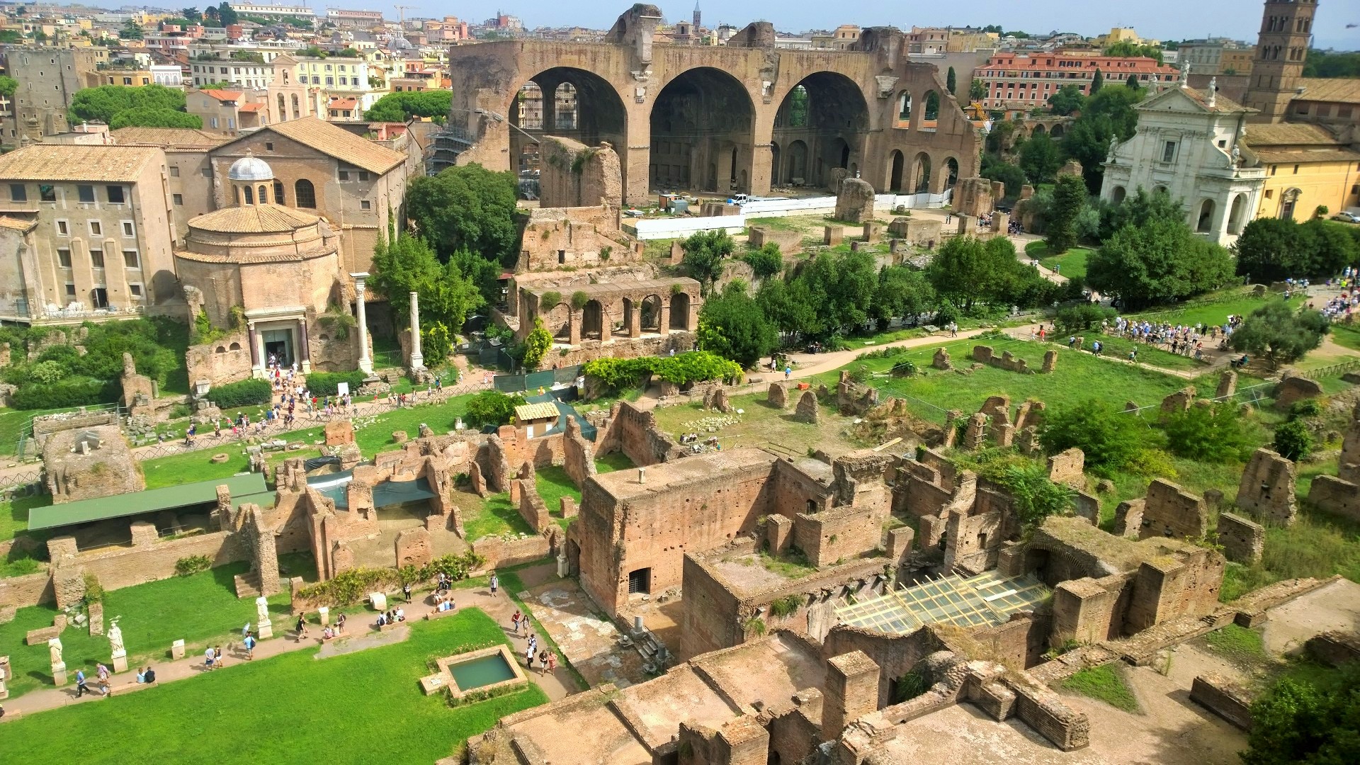 Colosseumilta matka jatkui Forum Romanumille, jonka rauniot ovat toki paljon vaatimattomammat kuin jylhä Colosseum, mutta silti paikka on todella mielenkiintoinen. Forum Romanumilta löytyy muun muassa Romuluksen temppeli, Vestan temppelin raunio sekä mahtava Maxentiuksen basilika. Lisäksi tuleehan siitä aika mahtava fiilis, kun saa astella pari tuhatta vuotta vanhoilla mukulakivikaduilla, jossa muinaiset roomalaisetkin kävelivät.
