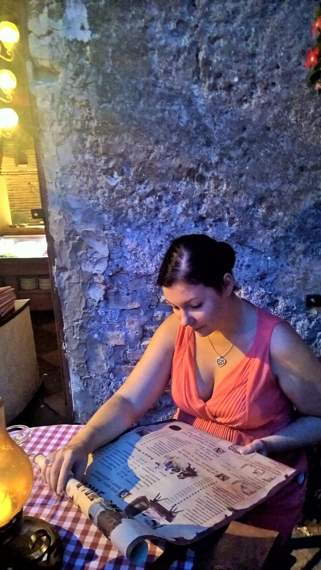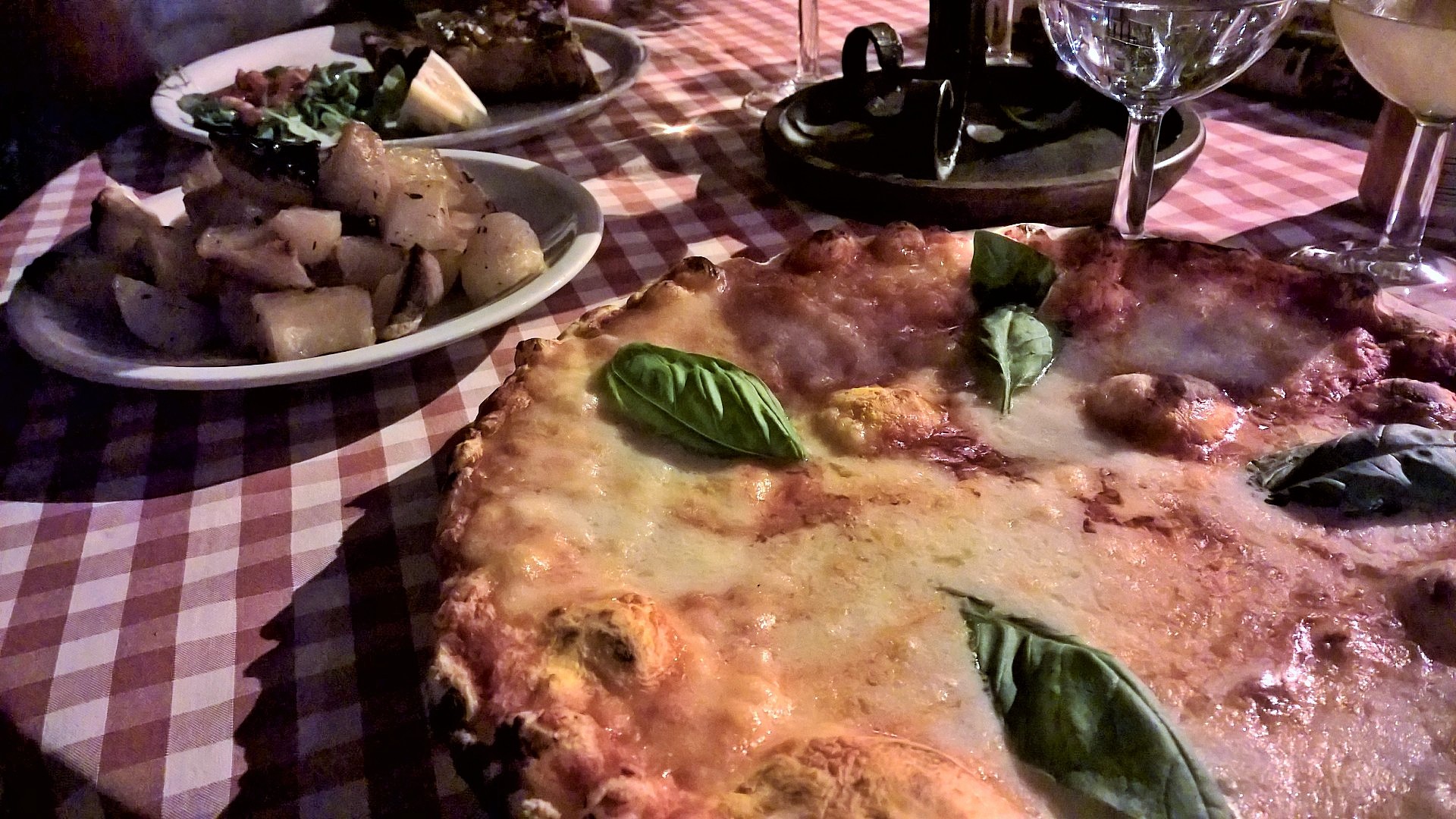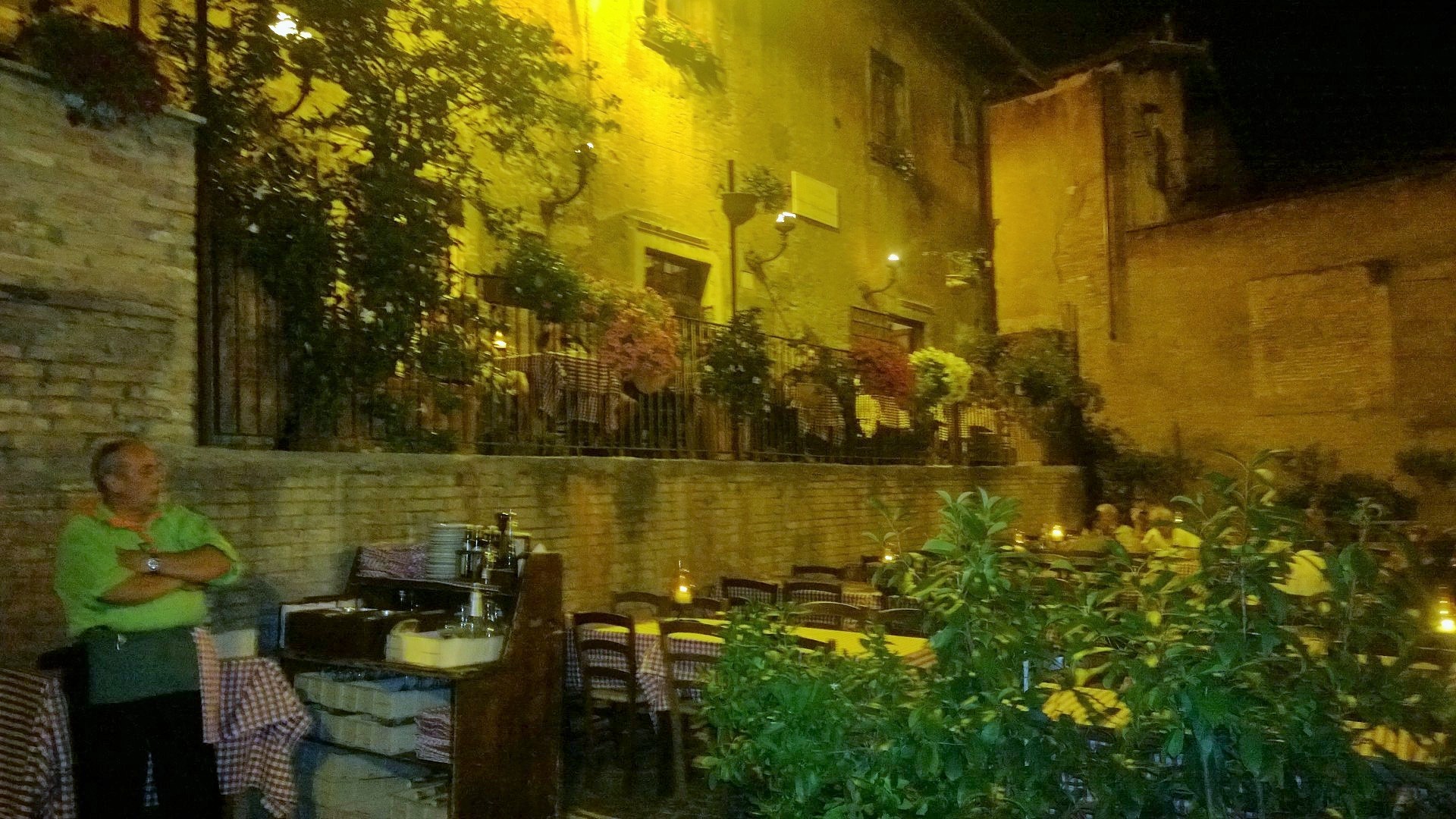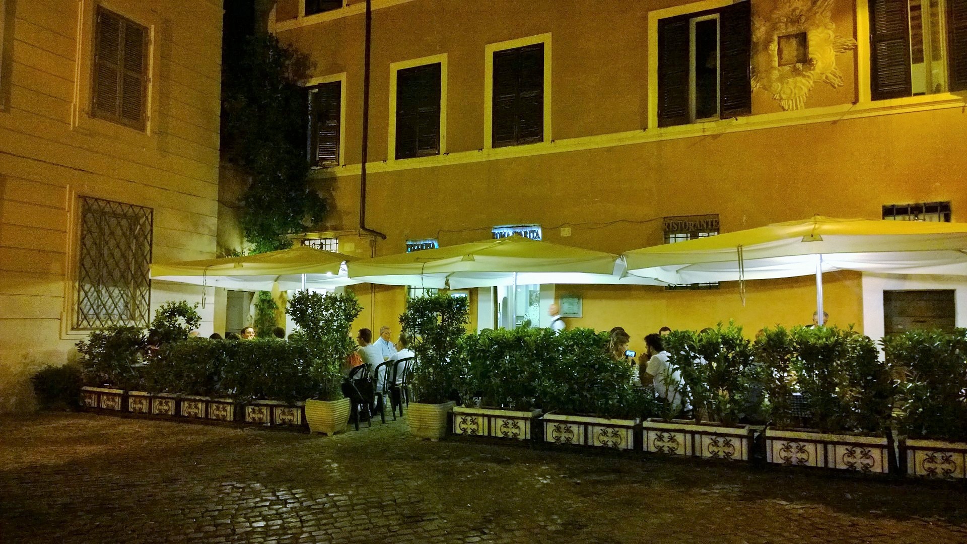 Trasteveressä osoitteessa Piazza dei Mercanti 3A sijaitseva ihastuttava taverna, jossa romanttinen ilta on taattu! Ravintolalla on viehättävä terassi kahdessa tasossa, jotka on valaistu lyhdyin ja kynttilöin, joissa palaa elävä tuli. Hämärtyvässä illassa tämä vanhassa kivitalossa sijaitseva ravintola tarjoaa täydelliset puitteet illalliselle. Ruoka tässä ravintolassa on taivaallista ja palvelu todella ystävällistä. Vastapäisen ravintolan pihamaalla elävä bändi soitti italialaista musiikkia, joka kuului hyvin myös tämän ravintolan terassille ja nosti tunnelmaa entisestään. Italialaiset annokset ovat valtavia ja ravintolaanhan me saavuimme kävellen, mutta vatsat pullollaan tilasimme kyllä taksin lähtiessämme.