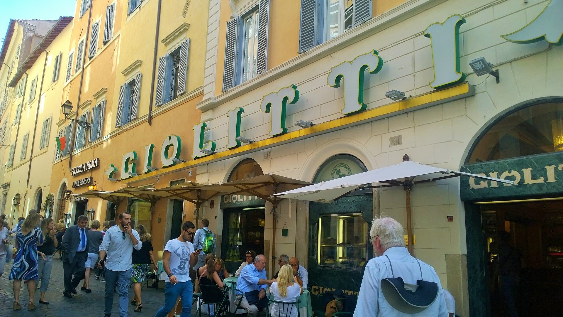 Rooman keskustasta löytyy myös Rooman kuuluisin jäätelöbaari, joka on toiminut jo yli sata vuotta. Kuuluisa herkuttelupaikka löytyy osoitteesta Via degli Uffici del Vicario 40 ja toinen Giolitti löytyy ainakin Mondon oppaan mukaan myös EUR:sta. Tässä paikassa toimitaan siten, että ensin jäätelöannos maksetaan kassalla, jossa voit valita pienen, keskikokoisen tai ison annoksen ja maksukuitin kanssa marssitaan jäätelötiskille, jossa annat työntekijälle kuittisi ja kerrot mitä annokseesi haluat. Voit valita annoksesi joko vohveliin tai kuppiin ja voit valita annokseen useampia eri makuja sekä kermavaahto vielä koko komeuden päälle. Myös Giolittiin oli päästävä uudelleen vielä lähtöpäivänä herkuttelemaan uskomattoman ihanilla jäätelöillä!