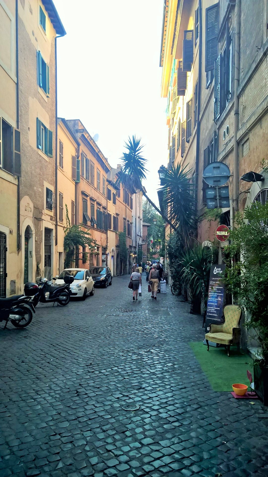 Hotellimme sijaitsi Trasteveren alueella, mistä löytyi myös mielenkiintoiset shoppailumahdollisuudet. Pääkadun varrella on lukuisia myyntikojuja, joista voi ostaa sekä uusia että käytettyjä hyväkuntoisia vaatteita vain muutaman euron hinnoilla. Trasteverestä löytyy myös pikkuputiikkeja esimerkiksi Via del Moron varrelta, josta löysimme edullisesti englanninkielisen Italian keittiön keittokirjan ja minä löysin itselleni aivan ihanat 130 euron kengät 40 eurolla alennuksesta.