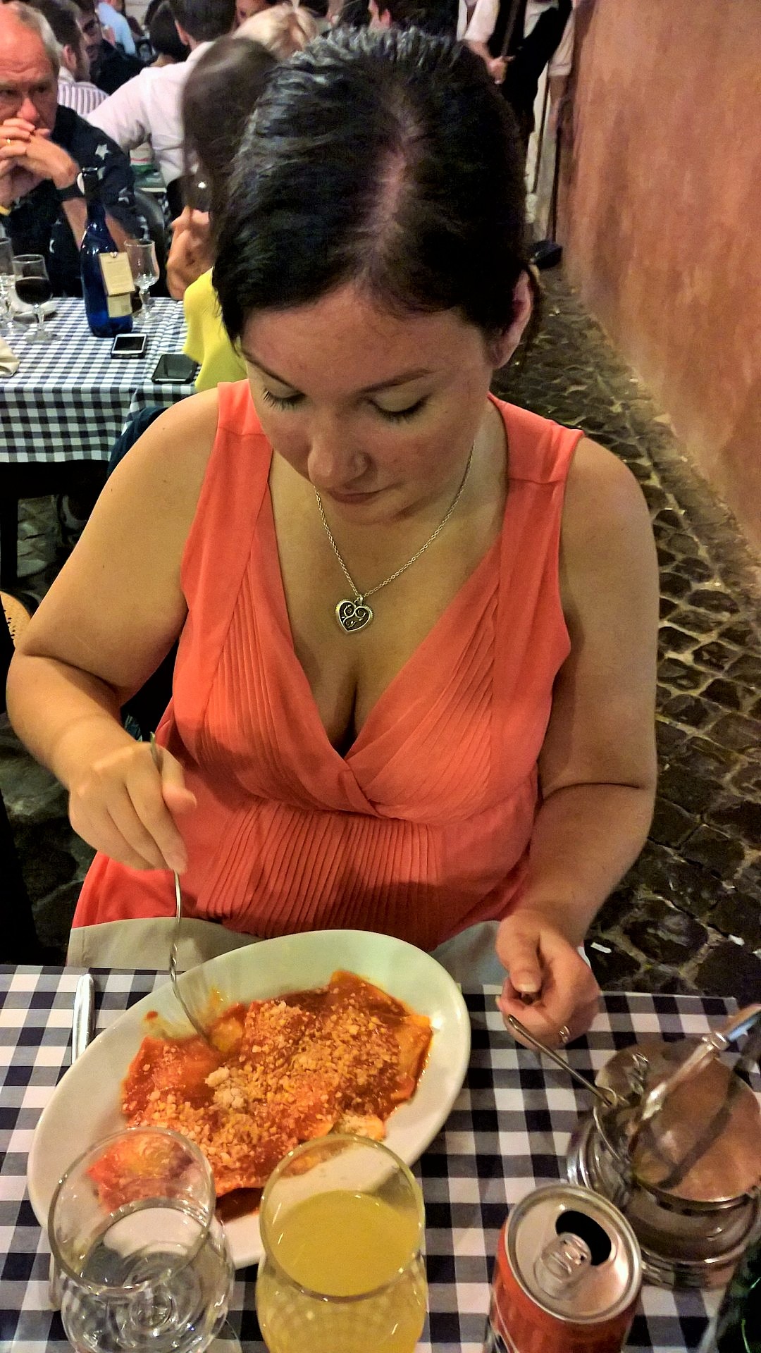 ”Kadonnut Rooma” sijaitsee aivan edellisen ravintolan naapurissa osoitteessa Piazza Santa Cecilia 24. Mondon matkaoppaan mukaan tässä ravintolassa ruoka on niin hyvää, että ruokailijat nuolevat sormensakin aterian päätteeksi. Tätä väitettä en epäile hetkeäkään. Tämäkin ravintola, kuten edellinenkin, näytti väen puolesta olevan todella suosittu, enkä ihmettele tätä, koska ruoka oli taivaallisen hyvää. Jos Taverna dei Mercanti oli tunnelmansa puolesta suosikkini, niin ruuan puolesta tämä Roma Sparita hiveli täydellisyyttä. Suojaisalla terassilla oli mukava ruokailla ja täälläkin palvelu oli aivan ensiluokkaista.