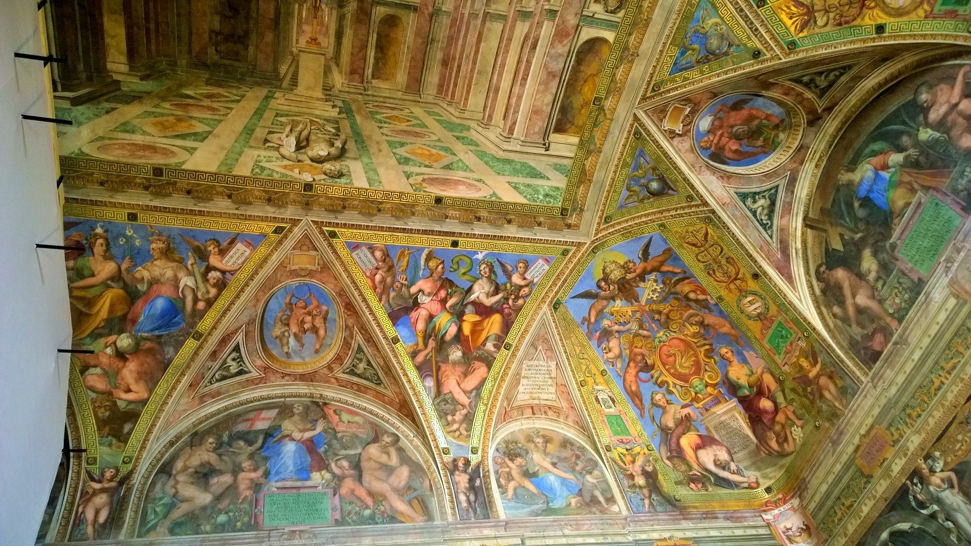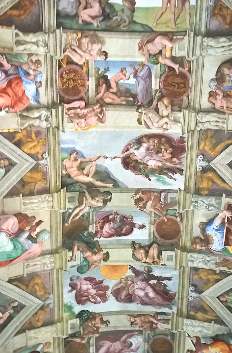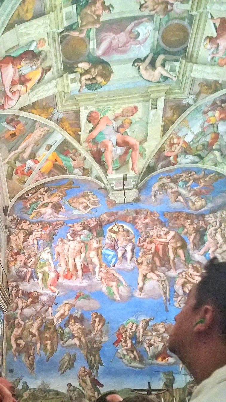 Kun olimme noin tunnin verran kiertäneet kirkossa ja nähneet tarpeeksi, niin poistuimme kirkosta ja siinä vaiheessa totesimme jonon kirkkoon olevan jo tuplaten pidempi kuin silloin, kun me saavuimme jonottamaan. Joten tulipahan todettua, että onneksi oltiin hyvissä ajoin liikkeellä. Pienen välipalan ja juomatauon jälkeen jatkoimmekin sitten matkaa kohti Vatikaanin museoita, joiden museonähtävyyksiä on koottu 1500-luvulta lähtien. Täällä jonottomuus todella yllätti meidät, koska edessämme lippuluukulle oli oikeasti ehkä 8 ihmistä ja pääsimme lähes tulkoon pysähtymättä suoraan kiertelemään museoihin. Vatikaanin museoihin lippu maksoi 16e/aikuinen. Museoissa kiertelimme pari tuntia ja silloinkin kävimme huoneita läpi aika vauhdikkaasti. En todella ihmettele, että jollain asiantuntijalla tai museoista syvemmin kiinnostuneella ei edes yksi päivä museoiden kiertelyyn riittäisi. Nähtävää on todella valtavasti! Meille kohokohta kuitenkin oli Sikstuksen kappeli ja Raffaellon huoneet, jotka olivatkin yhtä vaikuttavat kuin mitä olimme etukäteen kuvitelleet. Poistuessamme Vatikaanin museoista jono museoon olikin venähtänyt satojen metrien mittaiseksi. Taas tuli todettua, että onneksi olimme ajoissa!