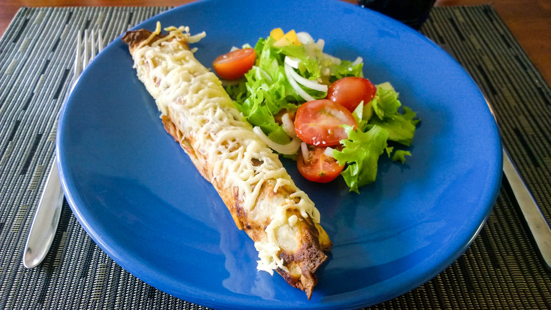 Täytä letut joko korvasieni- tai jauhelihatäytteellä ja kääri letut rulliksi. Ripottele päälle hieman juustoraastetta ja paista 200 asteessa noin 10 minuutin ajan kunnes juusto on sulanut. Koska letuissa on raskas täyte, niin kokonaisuutta keventää hyvin esimerkiksi raikas salaatti.