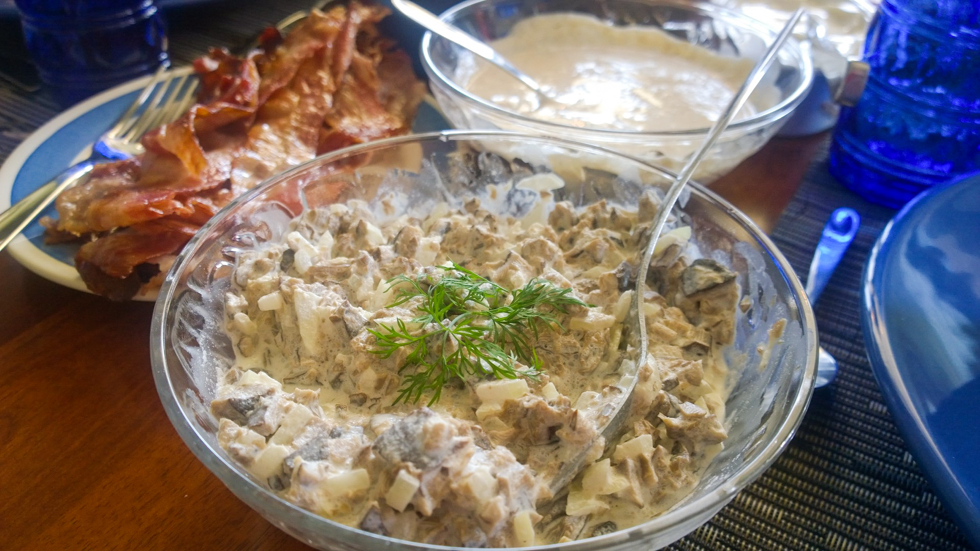 Keitä suolaan säilötyistä sienistä ensin ylimääräinen suola pois runsaassa vedessä ja sen jälkeen huuhtele sienet lävikössä. Purista sienet kuivaksi esimerkiksi puhtaan keittiöliinan sisässä. Tämän jälkeen pilko sienet ja samalla silppua mukaan sipulia. Lorauta sekaan kermaa ja mausta suolalla ja valkopippurilla omaan makuun sopivaksi.