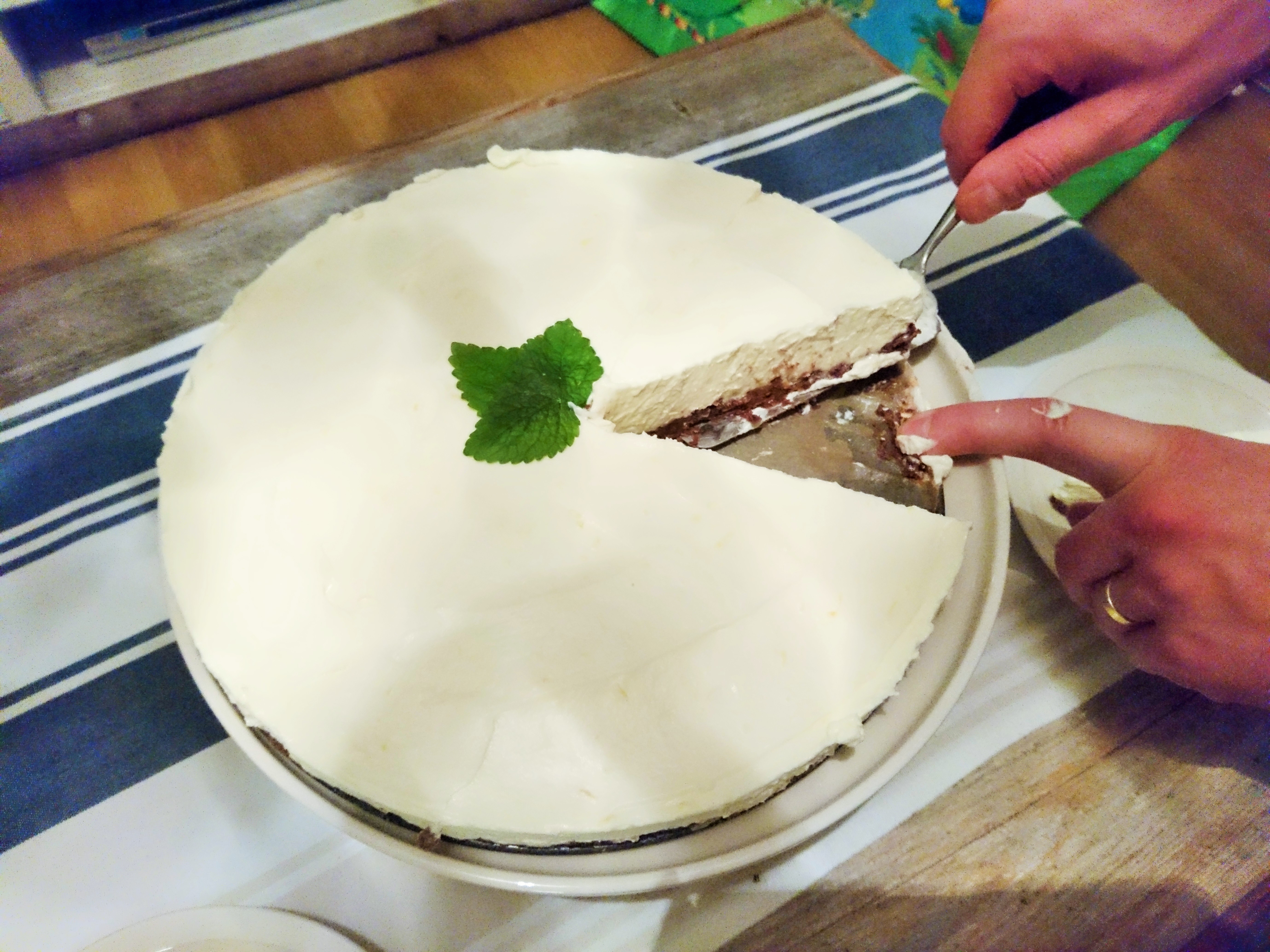 Inspiraatio ja täytteen ohje löytyi Suklaapossun blogista, mutta pohjan varioin itse. Kakusta tuli siinä mielessä erilainen, että pohja on makeampi kuin täyte. Tosin jos tykkää makeammasta täytteestä niin makeuttahan saa lisää lisäämällä sokerin määrää, mutta tosi hyvä kombinaatio syntyi myös dominon ja sitruksisen täytteen liitosta.