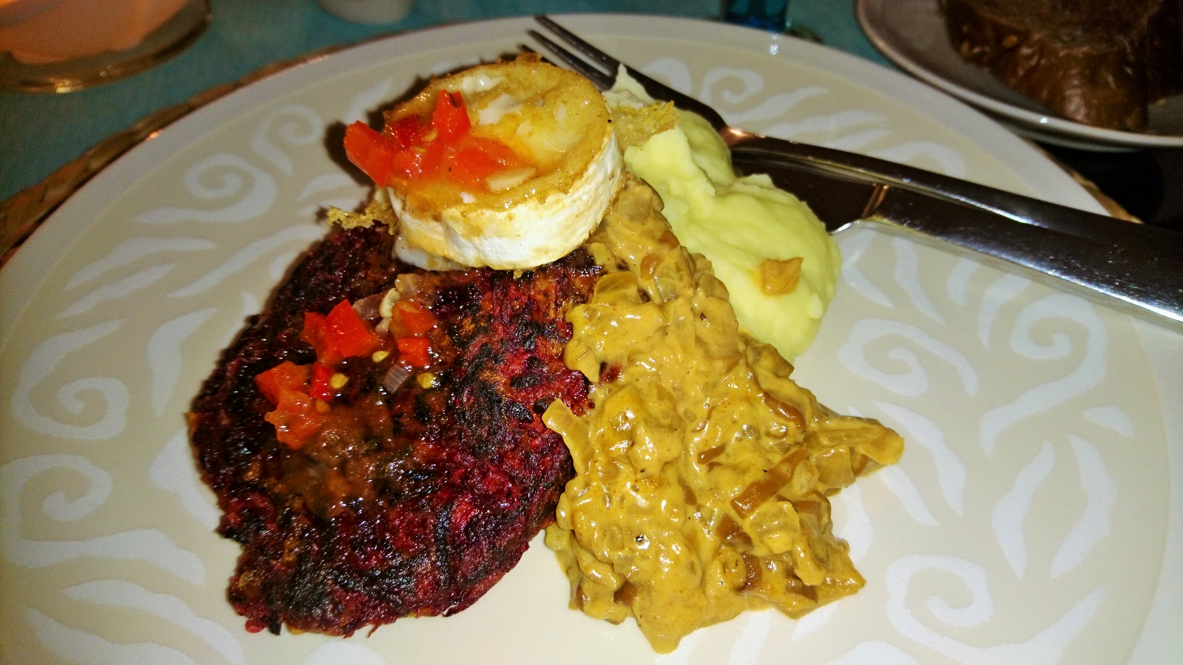 Punajuuripihvit ja paistettua vuohenjuustoa (10 isohkoa pihviä)