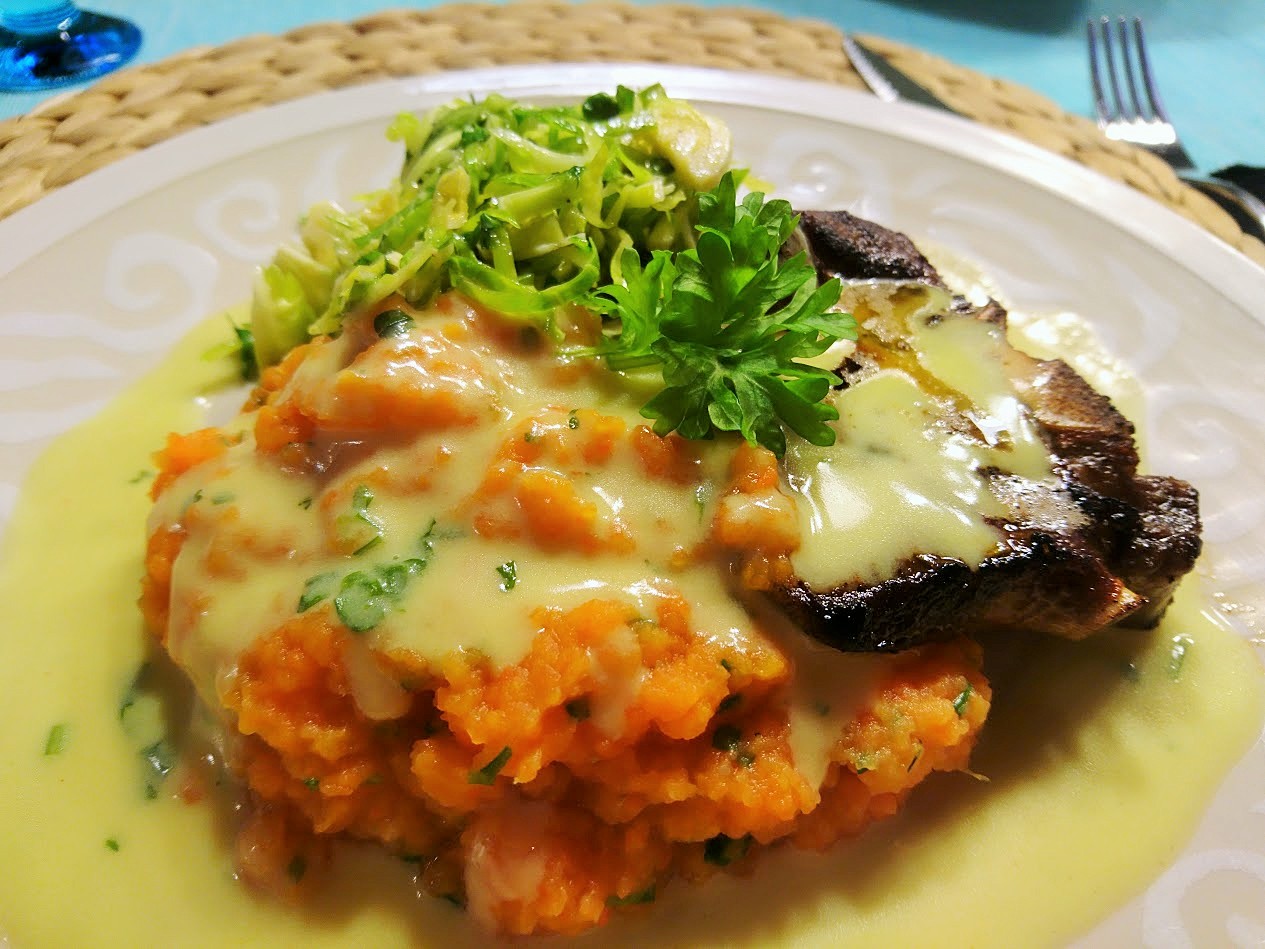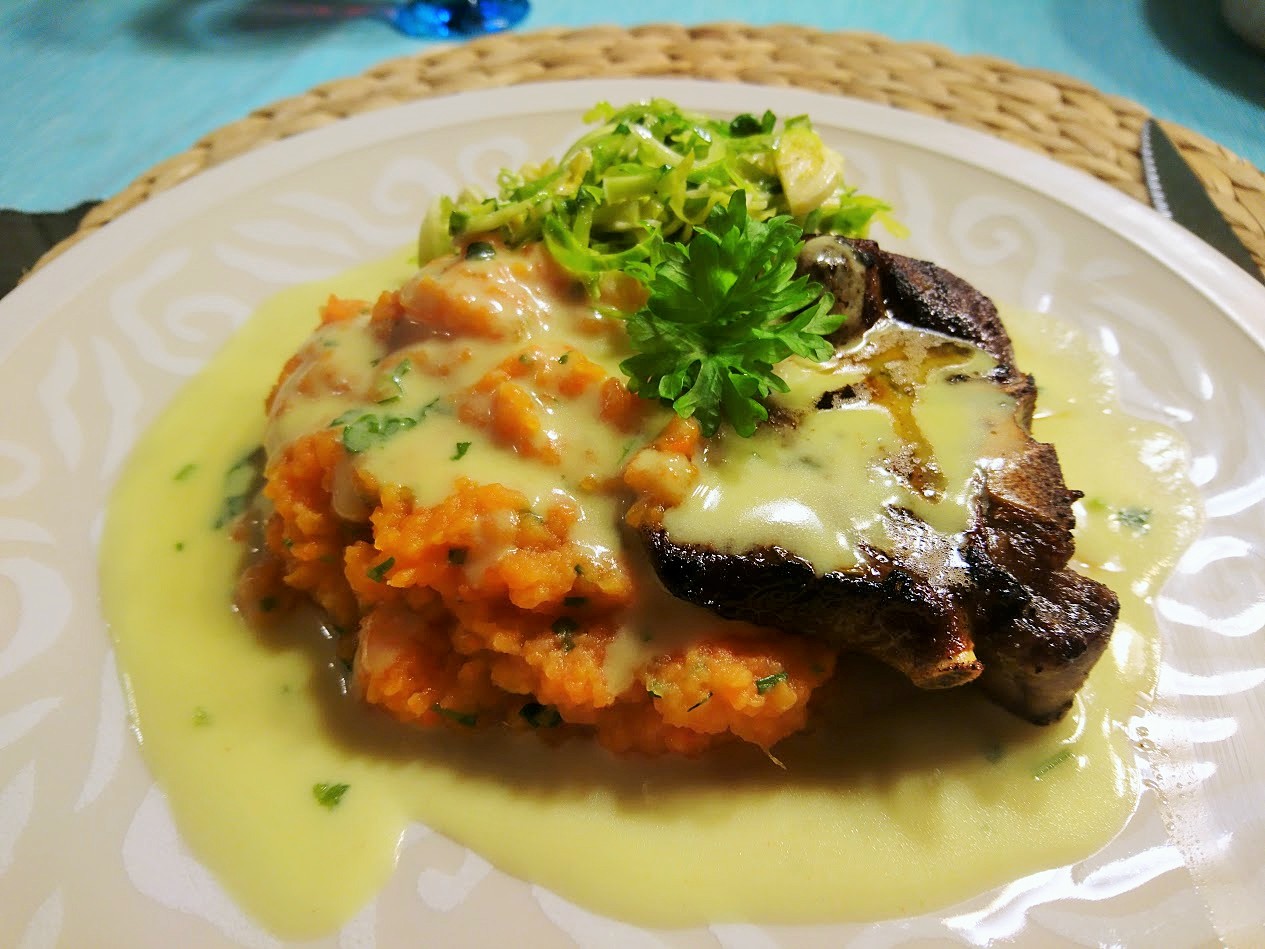 Sekoita kaikki marinadin ainekset keskenään. Lado karitsankyljykset pakastepussiin ja kaada marinadi lihojen päälle. Sulje pakastepussi tiiviisti ja pyörittele kyljyksiä mausteliemessä huolellisesti niin, että mausteet pääsevät joka koloon ja väliin. Anna kyljysten marinoitua vähintään pari tuntia. Kääntele pussia välillä. Kun kyljykset ovat marinoituneet, paista niitä kuumalla paistinpannulla tai grillissä 2-3 minuuttia per puoli molemmin puolin. Tällöin kyljykset jäävät sisältä mediumiksi eli vaaleanpunaiseksi. Suosittelen ehdottomasti syömään karitsankyljykset mediumina eikä läpiharmaaksi paistettuna. Jos kuitenkin haluat kyljyksesi läpikypsänä, niin tällöin 5 minuuttia molemmin puolin paistettuna kyljykset ovat niin sanotusti well done. Ripauta vielä paistettujen kyljysten päälle ripaus suolaa ja kyljykset ovat valmiit tarjoiltaviksi. Meillä karitsankyljysten kanssa tarjottiin juuresmuusia, jossa perunan lisäksi oli porkkanaa ja bataattia. Muusi oli maustettu tuoreella ruohosipulisilpulla. Lisäksi oli hollandaisekastiketta ja ruusukaalisalaattia. Vinkki! Valmista kaikki muut aterian komponentit valmiiksi ennen kuin alat paistamaan kyljyksiä, jotta pääset suoraan syömään ruokavierainesi, kun kyljykset on taidokkaasti paistettu mediumiksi.