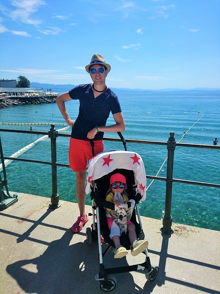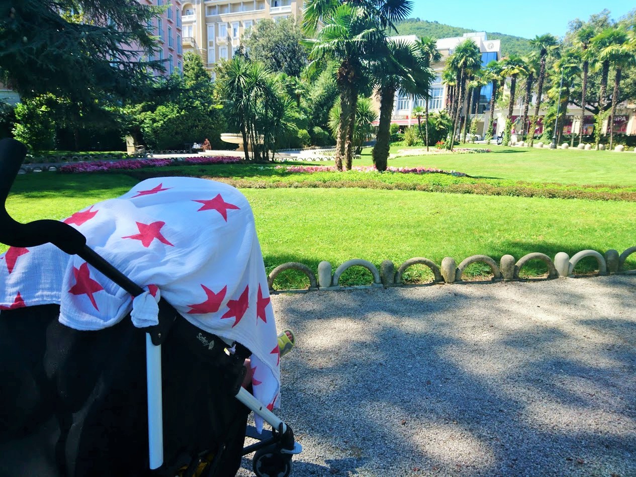 Kun olimme kävelleet pitkin rantapromenadia ja tutustuneet Opatijaan, syöneet merinäkymästä nauttien jäätelöannokset, kurkanneet muutamiin putiikkeihin, katselleet hieman eri ravintoloiden tarjontaa ja hintatasoa, kierrelleet rannan edustalla olevissa markkinakojuissa ja todenneet kaupungin hintatason kalliin puoleiseksi naapurikaupunkeihin verrattuna nukahti Alisa rattaisiinsa ja me istuimme vielä tunnin verran kauniissa puistossa hörppien viileitä juomia ja nauttien puistonpenkillä varjossa hieman viileämmästä säätuntumasta Alisan nukkuessa. Paluumatkalla vilkaisimme vielä ravintola Rokon ruokalistaa ja totesimme sen sentään olevan hintatasoltaan inhimillinen ja aiempien suositustenkin kannustamana päätimme, että tämän ravintolan palaamme vielä testaamaan joku päivä illallisen merkeissä.