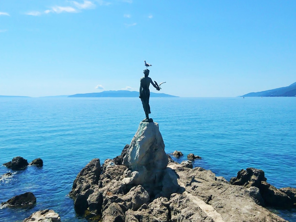 Rantaelämää valvoo aivan Pyhän Jacobin kirkon vieressä rannassa kivikolla seisova neitoa esittävä patsas, jonka kädellä seisoo merilokki. Patsas tunnetaan nimillä Maiden with the Seagull (englanniksi) / Djevojka s galebom (kroatiaksi) ja se on Opatijan sekä samalla myös koko Kvarnerin alueen tunnetuin symboli, joka tätä nykyä somistaa postikortteja ja muita matkamuistoesineitä. Patsas on merkittävästä asemastaan huolimatta varsin nuori, sillä se on vuodelta 1956 eikä tämä neito suinkaan ole alkuperäinenkään tällä paikalla seisonut patsas. Tämän neidon paikalla seisoi aiemmin Madonna Del Mare –patsas, joka pystytettiin 1800-luvun lopulla, kun kreivi Arthur Kesselstadt menetti elämänsä kevätmyrskyssä mereen Opatijan edustalla ja hänen perheensä pystytti patsaan herättääkseen taas eloon kreivin kadotetun sielun. Madonna-patsas vaurioitui kuitenkin kovissa sääolosuhteissa ja uudelleen korjattu patsas sijoitettiin Villa Angiolinan museoon ja sen kullattu kopio sijoitettiin Pyhän Jacobin kirkon edustalle.