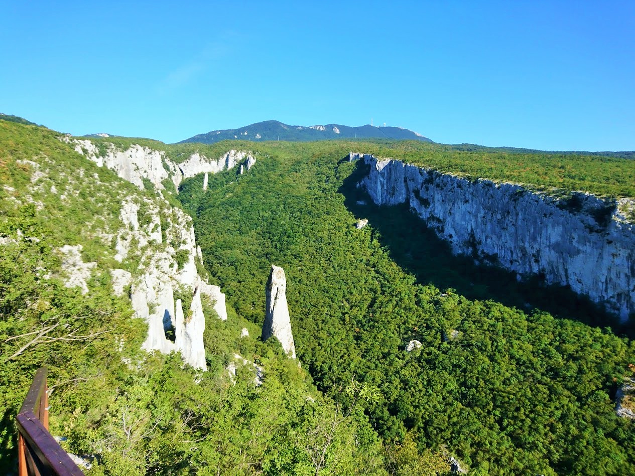 Vela dragan sanotaan olevan Učka-vuoren nähtävyyksistä vaikuttavin, enkä lainkaan kiistä sitä. Tosin näkymät vuoren huipultakin vetävät sanattomaksi. Vela draga on alkanut muotoutumaan jo 140 miljoonaa vuotta sitten ja luonnonvoimien, kuten maanjäristysten, tuulen, auringon ja veden, vaikutuksesta se muotoutui tertiäärisen maailmankauden aikana. 1963 vuodesta asti Vela draga on ollut suojeltu luontoalue. Reitti kulkee kanjonin reunaa pitkin, josta voi ihastella huikeita näkymiä ja lopuksi näköalapaikalta eteen levittäytyy koko kanjoni kaikessa komeudessaan. Upeat valokuvat matkamuistoksi ovat taatut tästä Luonto Äidin arkkitehtuurinäytteestä!