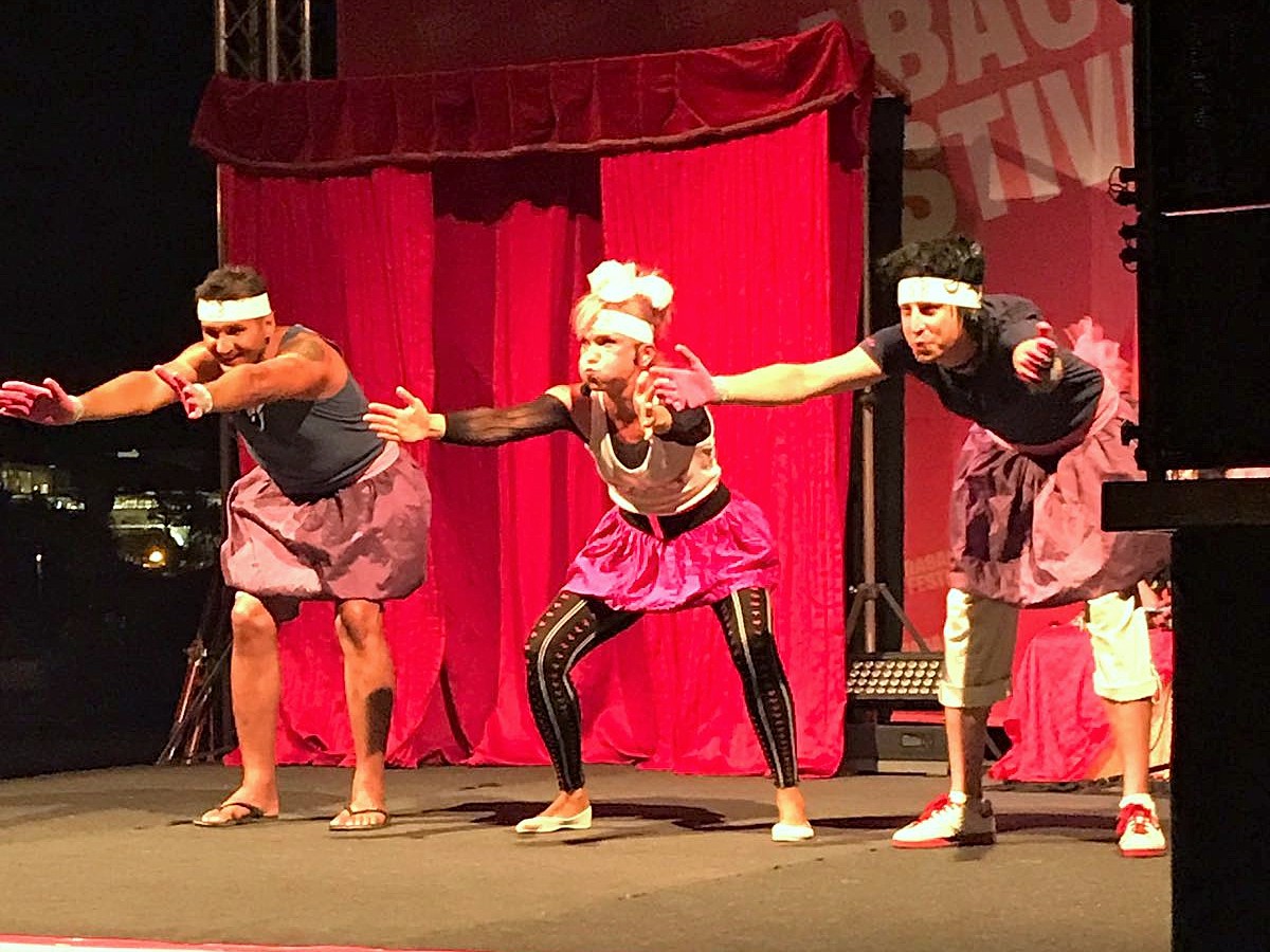 Esiintymislava oli aivan merenrannalla ja esitys alkoi juuri auringon laskettua illan hämärtyessä. Esityksen alkaessa katselimme samalla, miten oranssisena, kuin vasta syttymässä oleva, kuu lipui vastapäisen vuoren takaa näkyviin. Kuu nousi niin vauhdilla, että sen liikkeen pystyi silmällä erottamaan. Vain parissa minuutissa kuu oli kiskonut itsensä kokonaan esille horisontin takaa ja jatkoi kipuamistaan korkealle taivaalle luoden upean kuunsillan, joka halkoi merta vastarannalta aina meille rantavesiin saakka.