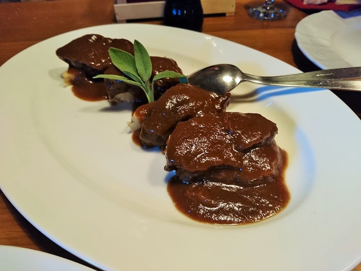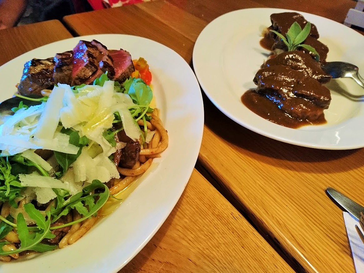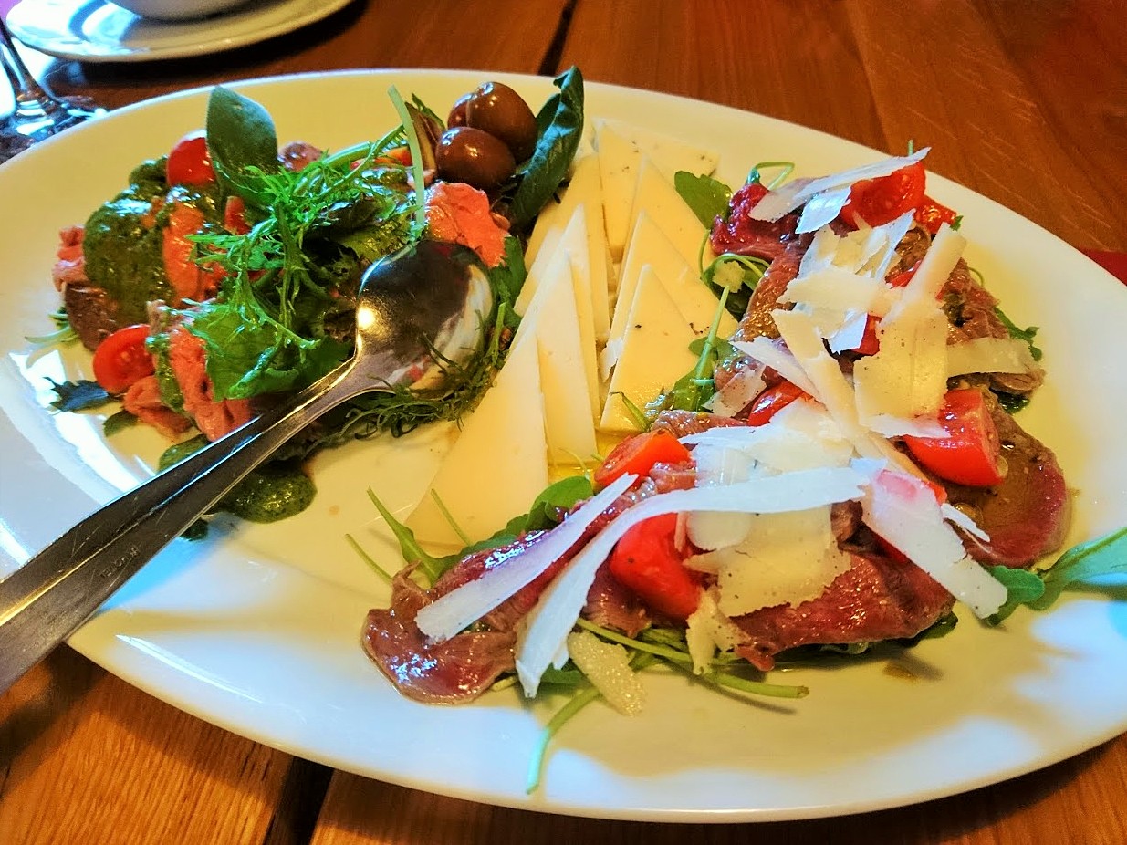 Kerroin ravintolan omistajalle, joka oli tarjoilijamme, että olemme viettämässä syntymäpäivääni ja haluaisimme syödä elämäni parhaan aterian. Omistaja lupasi toteuttaa unelmani ja sanoi, että lähtisin ravintolasta hyvin onnellisena illallisen päätteeksi. Emme tilanneet kukaan suoraan listalta, vaan poikkesimme tavallisesta protokollasta täysin. Sen sijaan alku- ja pääruoaksi tilasimme maisteluannokset ja sanoin ravintolan omistajalle, että hän tietää varmasti parhaiten, mitä tuohon settiin kannattaisi koota. Kerroin, että normaalisti tilaisin varmastikin kunnon pihvin, mutta nyt mieleni tekee testata myös jotain uutta, kuten naudan poskea. Alkuruuaksi omistaja kertoi suosittelevansa maisteluannokseen salaattipedille tuoreiden kirsikkatomaattien sekä todella hyvän sitruunaisen kastikkeen kanssa aivan tuoretta buffalohärkää ohuiksi viipaloituna carpaccion tapaan. Toinen lihaversio olisi kevyesti mediumiksi paahdettua härkää pestokastikkeella. Lisäksi paikallisia juustoja, joista toinen oli vaatimattomasti tryffelijuustoa, sekä marinoituja oliiveja. Pääruoaksi maistelulautaselle hän suositteli härän pihviä lämpimien kasvisten kera, pitkään haudutettua, suussasulavaa naudan poskea punaviinikastikkeessa polentakakun päällä sekä tagliataa itsetehdyn pastan ja kasvisten kera. Sanoin luottavani kulinaristisen elämykseni täysin hänen käsiinsä. Meille siis tuotiin iso lautasellinen kaikkea maisteltavaa keskelle pöytää, josta nostelimme herkkuja kukin omalle lautasellemme. Ruoka oli ensimmäisestä suupalasta lähtien niin hyvää, että minun olisi melkeinpä tehnyt mieli itkeä onnesta. En ole koskaan syönyt mitään niin hyvää ja suussani oli sellainen makujen sinfonia ja ilotulitus ettei sitä pysty sanoin kuvailemaan. Sanoin jo alkuruokaa syödessäni, että en todellakaan tiedä mihin tämä kaikki ruoka tulee mahtumaan, mutta nyt ruoka on vain niin taivaallisen hyvää, ettei minua voi enää pysäyttää. Syön kaiken mitä eteeni kannetaan, vaikka vatsassa ei enää tilaa olisikaan. Minä olin ruokaparatiisissa. Maut olivat todella puhtaat ja autenttiset, toisaalta jokainen maku erottui makunystyröillä ja toisaalta taas kaikki maut sulautuivat yhteen täydelliseksi kokonaisuudeksi.