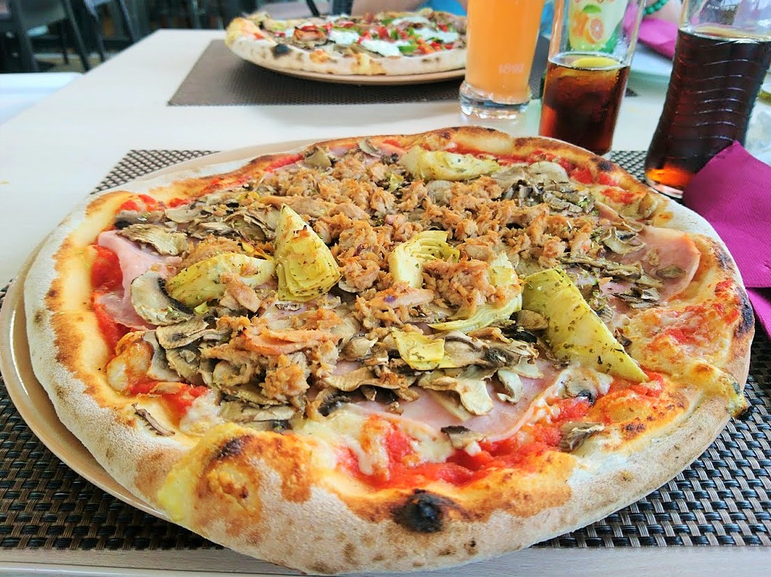 Rannalta palailimme takaisin Pulaan ja vatsan murinoista päätellen aika oli juuri sopiva päivälliselle. Ravintolaksi valikoitui Pizzeria TiVoli, joka tuli testattua itseasiassa kahteen kertaan, sillä kävimme TiVolissa myös ensimmäisellä Pula-visiitillämme, kun odottelimme veljeni lennon saapumista. Pizzat olivat kuitenkin niin taivaallisen hyviä, että päätimme mennä pizzalle samaan paikkaan myös veljeni kanssa ennen kuin hänen lentonsa lähtee takaisin Suomeen. TiVoli on myös äänestetty Pulan toiseksi parhaaksi ravintolaksi, joten sekin antaa jo ehkä hieman takeita siitä, että ruoka todella on hyvää! Kaiken lisäksi kyseessä on varsin edullinen ravintola, jolla on tilava oma parkkipaikka. Tämä johtuu siitä, ettei ravintola ole Pulan keskustassa vaan parin kilometrin päässä keskustan kupeessa olevan satama-altaan takana. TiVolista vatsat pullollaan käsittämättömän hyvää pizzaa matka jatkuikin sitten Pulan lentokentälle, josta veljeni jatkoi matkaansa kohti Helsinkiä ja me vietämme täällä Kroatiassa vielä muutaman viikon.