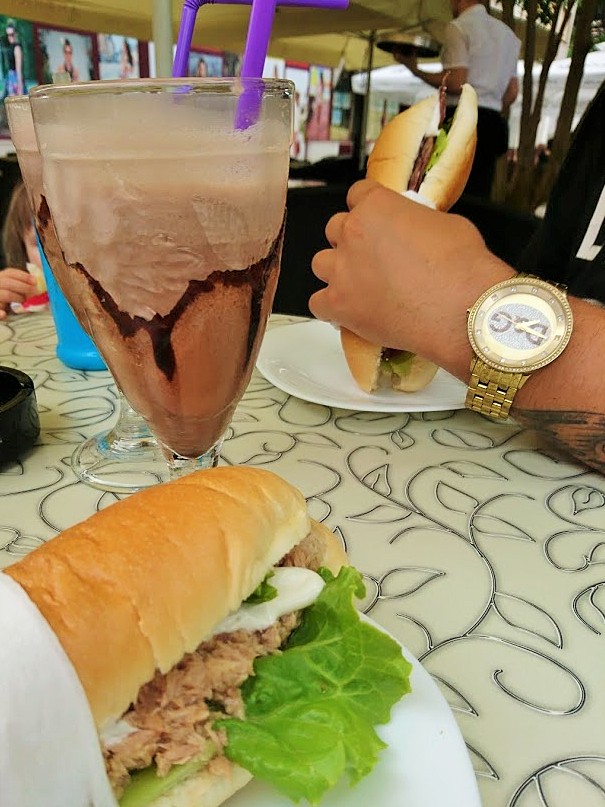 Pula Arenalta suuntasimme kohti aivan vieressä sijaitsevaa Pulan keskustaa. Ensin vuorossa oli kuitenkin Alisan lounas ja meidän välipalat, jotta energiat eivät tyystin ehdy. Tänä toisena päivänä lämpöasteita oli sentään vain lähemmäs 35 eikä aivan sitä 40 astetta, kuten ensimmäisellä visiitillämme. Kuuma silti oli ja hiki virtasi solkenaan ohimoilla ja niskasta kohti selkäpiitä. Pienelle stopille oli siis tarvetta. Bongasimme netistä, että Pulan parhaaksi äänestettyyn kahvila Fortunaan meillä oli matkaa vain 50 metriä ja kahvilahan oikeastaan olikin jo siinä aivan nenämme edessä. Niinpä istahdimme Fortunan terassille ja tilasimme herkulliset välipalapatongit ja minä sekä veljeni suklaapirtelöt ja Lari tilasi itselleen oluen. Vaikka kahvila olikin rankattu Pulan parhaaksi, hinnat olivat varsin kohtuulliset. Hintoihin vaikutti varmasti myöskin se, ettei kahvila ole aivan ostoskadulla vaan hieman syrjässä, tosin se osuu suoraan matkan varrelle, kun kävellen siirtyy Pula Arenalta kohti ostoskatua. Fortunassa oli myös saatavilla varsin kohtuulliseen hintaan aivan upeita jäätelöannoksia jokaiseen makuun. Palvelukin oli aivan huippua, ystävällistä ja tarjoilijamme oli varustettu varsin nokkelalla huumorintajulla.