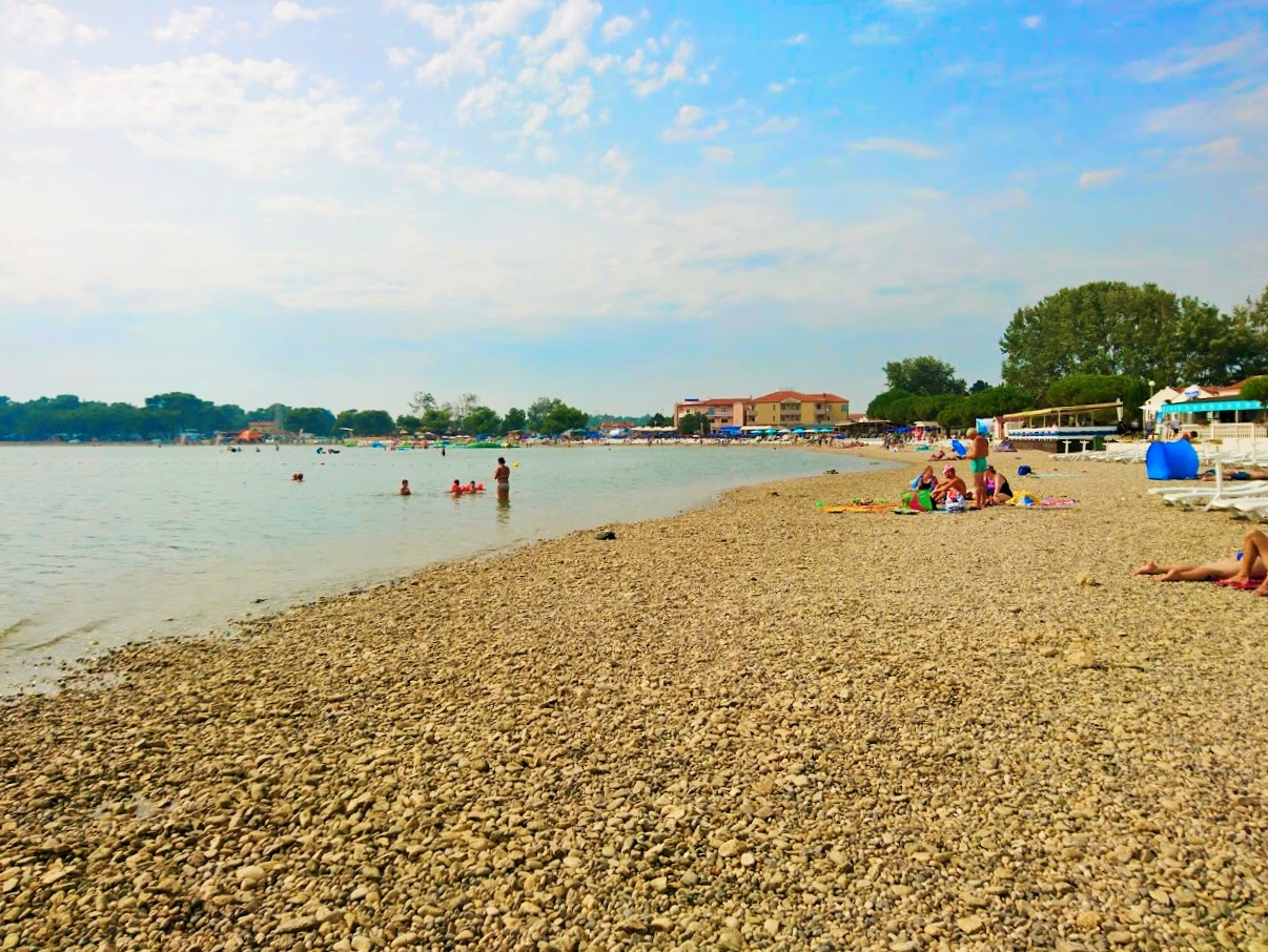 Pulan keskustasta pienten ostosten jälkeen matka jatkui hieman Pulasta syrjään kymmenen kilometrin päähän Medulinille. Medulinissa meitä kutsui Beach Bijeca, mikä oli bongattu netistä visiitin arvoiseksi rannaksi sen pitkän hiekkarannan vuoksi. Täällähän tosiaan kaikki rannat ovat pikkukivirantoja tai kalliorantoja, joten halusimme kokea Kroatiassa edes yhden hiekkarannan. Sää oli kuuma ja kostea, mutta pilvinen ja alkuun meinasi alkaa ripottelemaan hieman vettäkin. Nopeasti sää kuitenkin vaihtui ja jälleen aurinko pilkisti pilvien raoista. Bijecassa on hyvin parkkitilaa maksullisilla parkkipaikoilla ja kaikki tarvittavat palvelut saatavilla pukukopeista lähtien. Plussaa ilmaisista suihkuista ja vessoista. Yli kilometrin mittaisella rantakaistaleella on myös lukuisia ravintoloita sekä halutessaan käyttöönsä voi vuokrata aurinkotuoleja, aurinkovarjoja ja kaikenlaisia vesiurheiluvälineitä. Heti paikalle päästyämme huomasimme, että eihän tämä nyt aivan hiekkaranta olekaan. Osa rantakaistaleesta on kyllä hiekkaa, mutta osa on pikkukivirantaa, johon on hiekkaa sekoittuneena. Rantavesissä pohja ei myöskään ole hiekkapohja vaan pikkukivipohja, kuten kaikilla muillakin rannoilla, mutta harmiksemme äkkäsimme, että hiekka teki vedestä varsin sumean. Bijecalla ei siis pääse nauttimaan yhtä kirkkaista vesistä kuin muilla Kroatian rannoilla. Ranta on ideaalinen pikkulapsille, sillä se on todella matala. Rantaa saa kahlata ja kahlata ja kahlata aina kyllästymiseen asti ja vesi yltää edelleenkin vain polviin saakka. Uimareille tämä paikka voi siis olla hieman puuduttava. Kuuman Pula-päivän jälkeen meriveteen pulahtaminen ja raikkaaseen suihkuun pääsy kuitenkin tuntui aivan luksukselta. Sai huuhtoa hiet pois ja edes hetkeksi sai taas raikkaan tunteen. Pulahdus lämpimään meriveteen ja raikas suihku sen jälkeen piristivät ja saivat vatsankin kurnimaan jo sen merkiksi, että seuraavaksi olisi päivällisen aika. Bijecan ranta Medulinissa oli siis varsin kelpo ranta palveluineen ja tilaa rantaviivalla ainakin on lukuisille auringonpalvojille, mutta meidän suosikkirantojen listalle tämä ranta ei päässyt turhan matalan rannan ja hiekasta samean veden johdosta. Lisäksi totesimme, että olemme ihastuneet pikkukivirantoihin juurikin niiden puhtauden vuoksi; hiekkaa ei löydy rantapäivän jälkeen joka kolosta ja reiästä vielä viikonkin päästä.