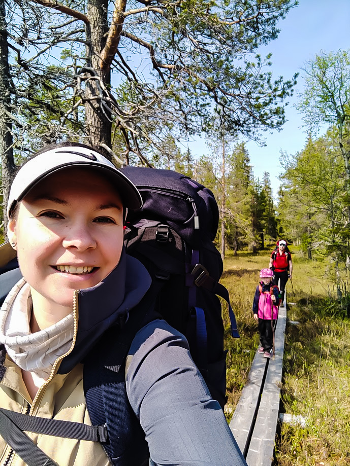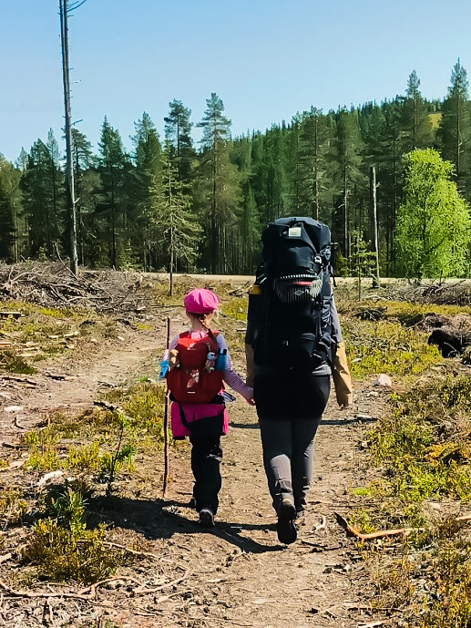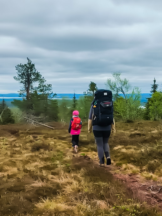 Alun perin suunnitelmissa oli tehdä vaellus kahden yön ja kolmen päivän taktiikalla, mutta myös tämä suunnitelma lopulta muuttui neljän yön ja viiden päivän mittaiseksi, mikä ei kyllä lainkaan haitannut, sillä omasta mielestäni kiireellä tempominen vaelluksella ei ole se juttu, miksi sinne menemme. Ennemminkin tarkoitus on tehdä jotain aivan muuta kuin mitä koulu- ja työarjessa normaalisti suoritamme pitkin vuotta kiireellä, paineessa sekä stressissä. Vaellusten tarkoitus on nimenomaan maadoittua takaisin niiden perusasioiden äärelle, mikä lopulta on kaikkein tärkeintä; hengittää vapaasti ja päästää irti kehoon kertyneestä henkisestä kuormituksesta ja jännittyneisyydestä. Minulle tämä on myös tärkeää perheen yhteistä aikaa. Vaellusten tavoite minulle ei ole päästä mahdollisimman nopeasti päätepisteeseen, vaan ennemminkin olen perillä siellä, missä kuuluukin, juurikin ollessani vaelluksella. Monesti vaellukselle lähtee arjesta stressaantunut, kuormittunut ihminen ja vaellukselta palaa vapaasti hengittävä, ylimääräisen henkisen kuorman metsään jättänyt ihminen, jonka mieli kuplii ja pulppuaa taas inspiroituneena uusia ideoita. Ja sen henkisen kuorman tilalle on tullut hieman sieltä ja täältä kolottavat paikat kehossa, mutta sehän vaan saa tuntemaan itsensä elossaolevaksi.