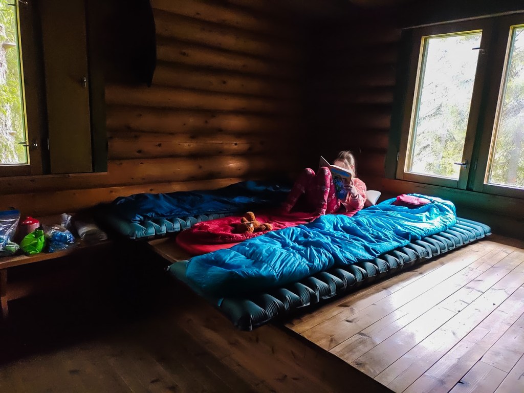 Saavuimme alkuillasta Ahmatuvalle, missä ei ollut meidän lisäksemme muita. Autiotuvassa on kaksi puolta, neljän ja kuuden hengen tuvat. Me päätimme majoittua pienemmälle puolelle, lämmitimme viileää tupaa hieman kamiinalla, laitoimme pedit laverille valmiiksi, valmistimme iltapalat ja kävimme yöpuulle. Tosin minä sain vielä hieman illalla jännittää, saanko mahdollisesti jonkin allergisen tai yliherkkyysreaktion ampiaisen pistosta, sillä saapuessamme tuvalle, oli sen lattialla pökertyneenä kaksi isoa liikkumatonta ampiaista. Olin juuri kosteuspyyhkeellä putsannut kasvoja ja käsiä ja Lari sytytteli kamiinaan tulia. Niinpä minä nappasin kosteuspyyhkeellä sormien väliin nuo ampiaiset, jolloin toinen ampiaisista yllättäen virkosikin ja pisti minua suoraan sormeen. Sormen päätä kihelmöi ja poltteli ja se aavistuksen verran turposi ja punoitti. Nappasin allergialääkkeet saman tien, ja illan mittaan onneksi saatiin huokaista helpotuksesta, ettei pistosta koitunut sen enempiä harmeja. Seuraavana päivänä pistoskohdan kipukin alkoi jo helpottamaan ja sormea pystyi taas suht normaalisti käyttämään.