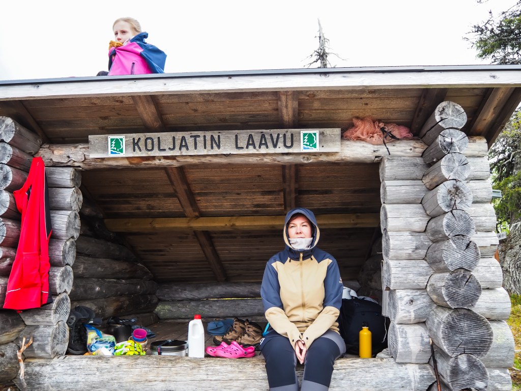 Päivän aikana saatiin sadetta niskaan jälleen, mutta huomattavasti kevyemmin kuin edellisenä päivänä ja sade oli enempi kuuroittaista. Matkaa kertyi 12 kilometriä. Lounasta söimme taas upealla Koljatin laavulla tihkusateisessa säässä, josta jatkoimme Karitunturin päivätuvalle, jossa välipalaksi mutustelimme energiapatukat ja sieltä laskettelimmekin viimeisen kilometrin kevyesti alamäkeen Ahmatuvalle asti ja sadekin oli lakannut.