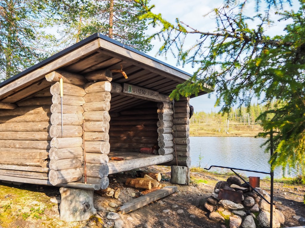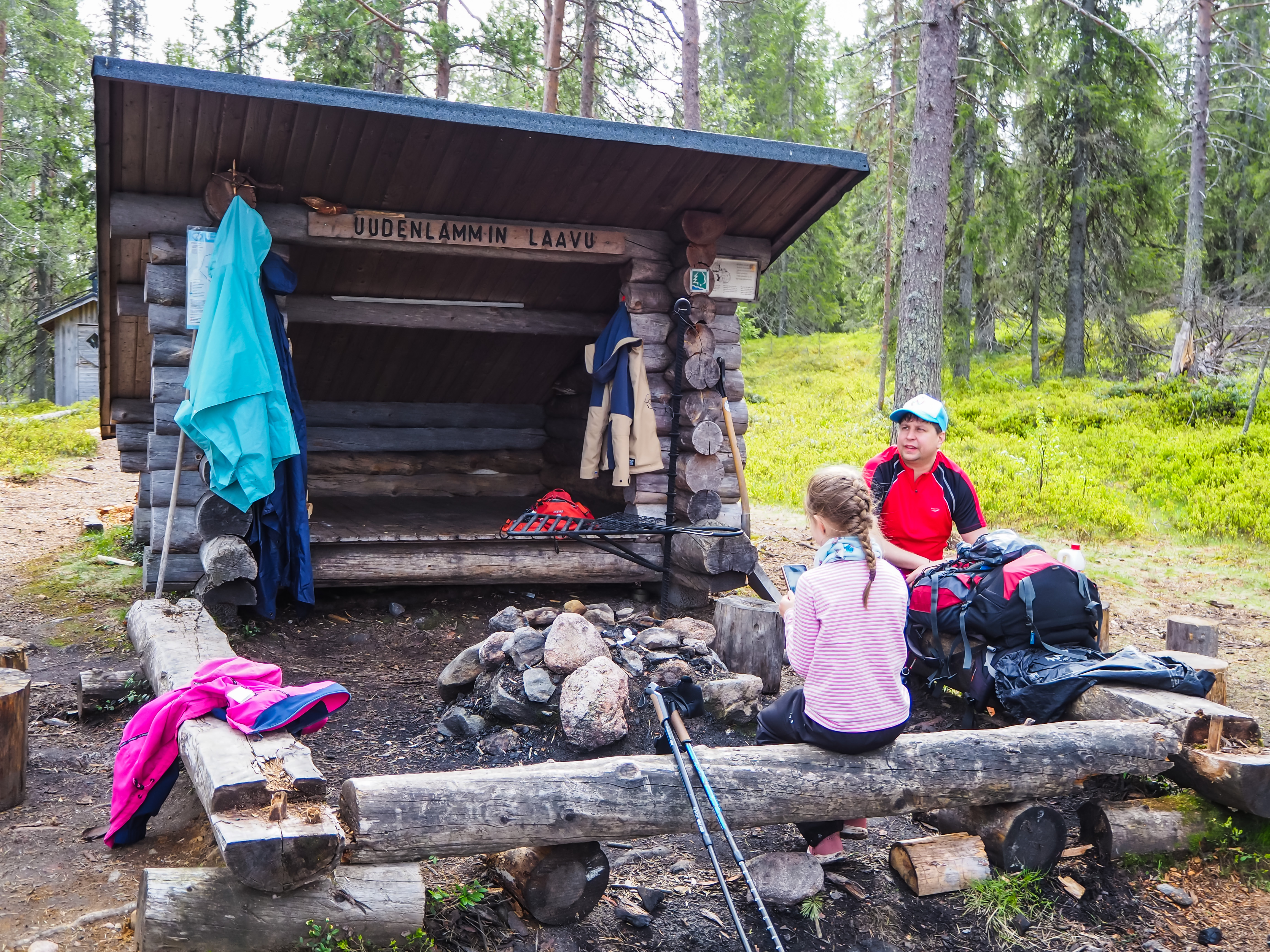Päivän kilometreiksi meille kertyi lopulta 17 kilometriä matkaa. Suuntasimme Liittolammin laavulta ensin Uudenlammin laavulle, jossa pidimme taukoa ja täytimme myös hieman vesipulloja. Uusilammilta jatkoimme Riisitunturille, ja tämä pätkä oli aika tiukkaa nousua ja jalat sai reippaassa nousussa mukavasti hapoille ja hengityksen jälleen kiihtymään raskaammaksi. Riisitunturi on kuitenkin kapuamisen arvoinen kaunis avotunturi, josta maisema aukeaa kauas jokaiseen ilman suuntaan. Huipulta voi ihastella vaikkapa horisontissa näkyvää Rukan tunturia. Riisitunturin tavoittaa lyhyillä päiväretkilläkin Riisitunturin parkkialueelta käsin, mutta alue tarjoaa hyvät puitteet myös pidemmillekin vaelluksille. Riisitunturin laelta jatkoimme Ikkunalammen kautta lounaalle Riisitunturin autiotuvalle, missä on upea iso keittokatos tauon pitämistä ja ruokailua varten. Autiotuvalta jatkoimme matkaa Soilun laavulle, josta Riisin riettaan reittiä pitkin vastapäivään kiertäen Riisinsuon niittyladon kautta palasimme takaisin polkujen risteykseen, mistä käännyimme takaisin Liittolammin laavulle.