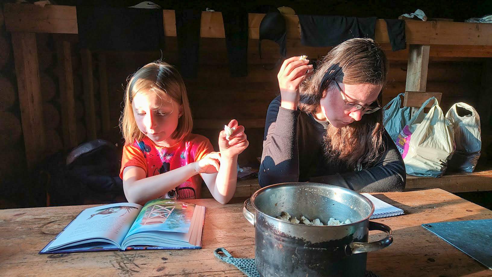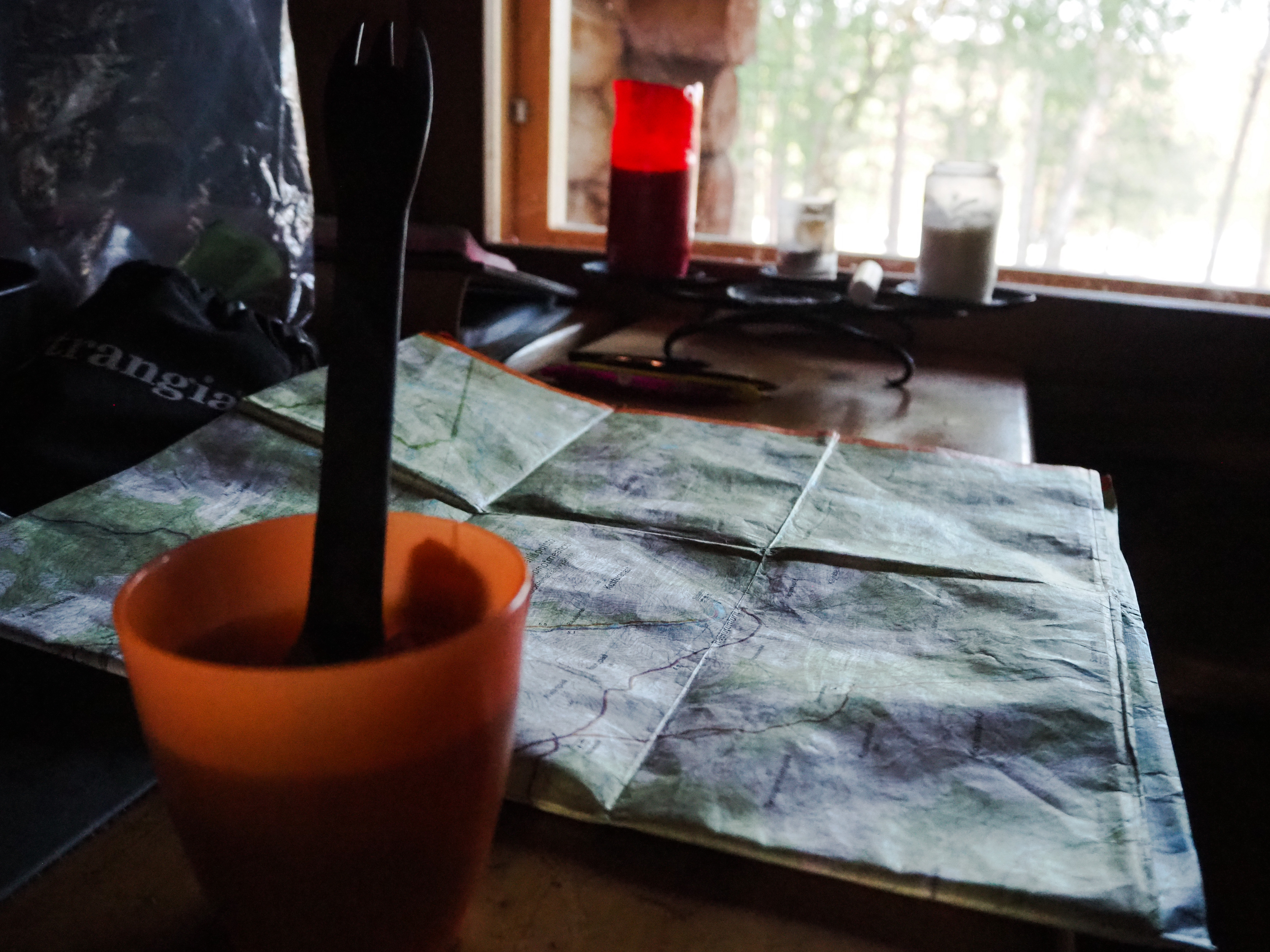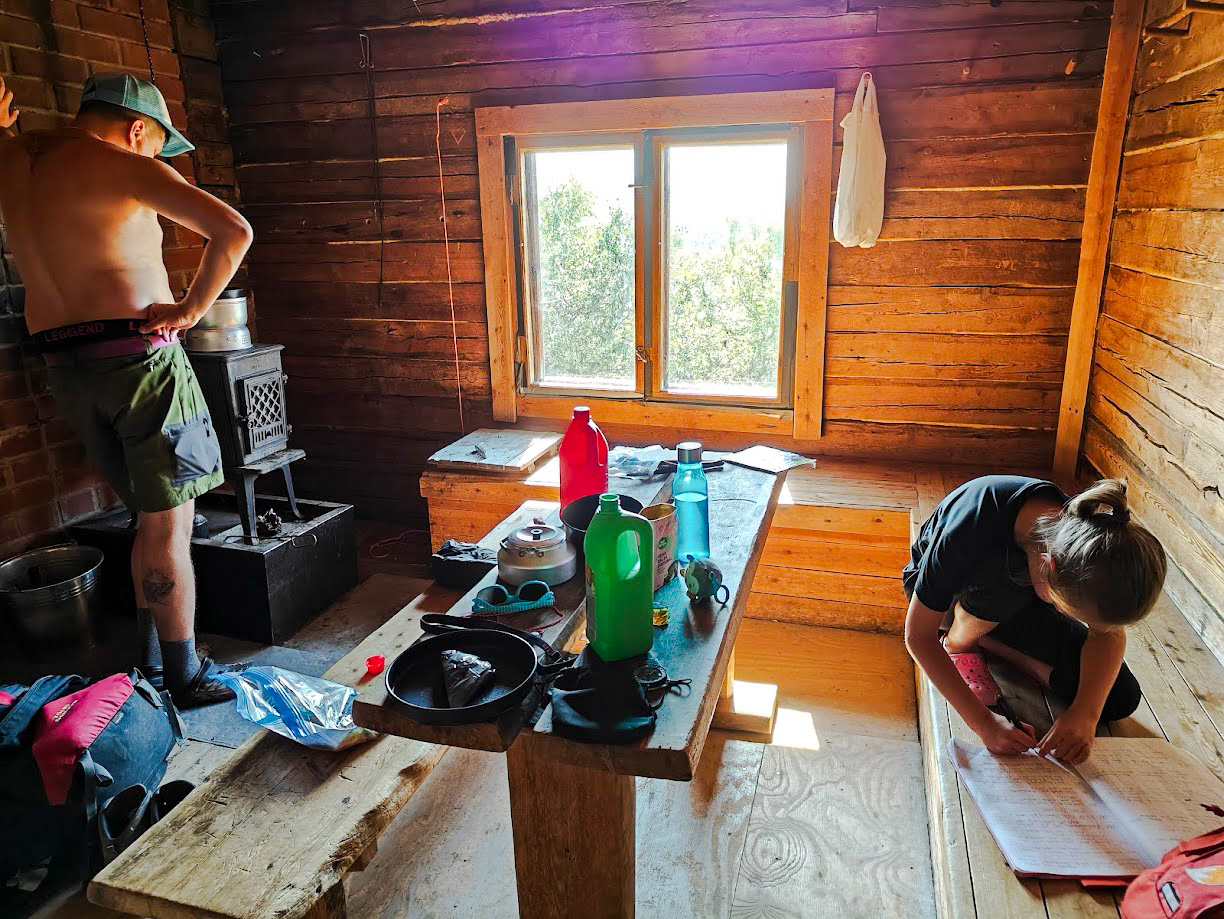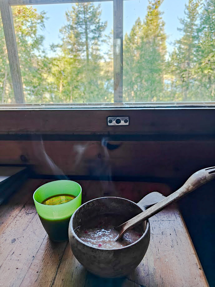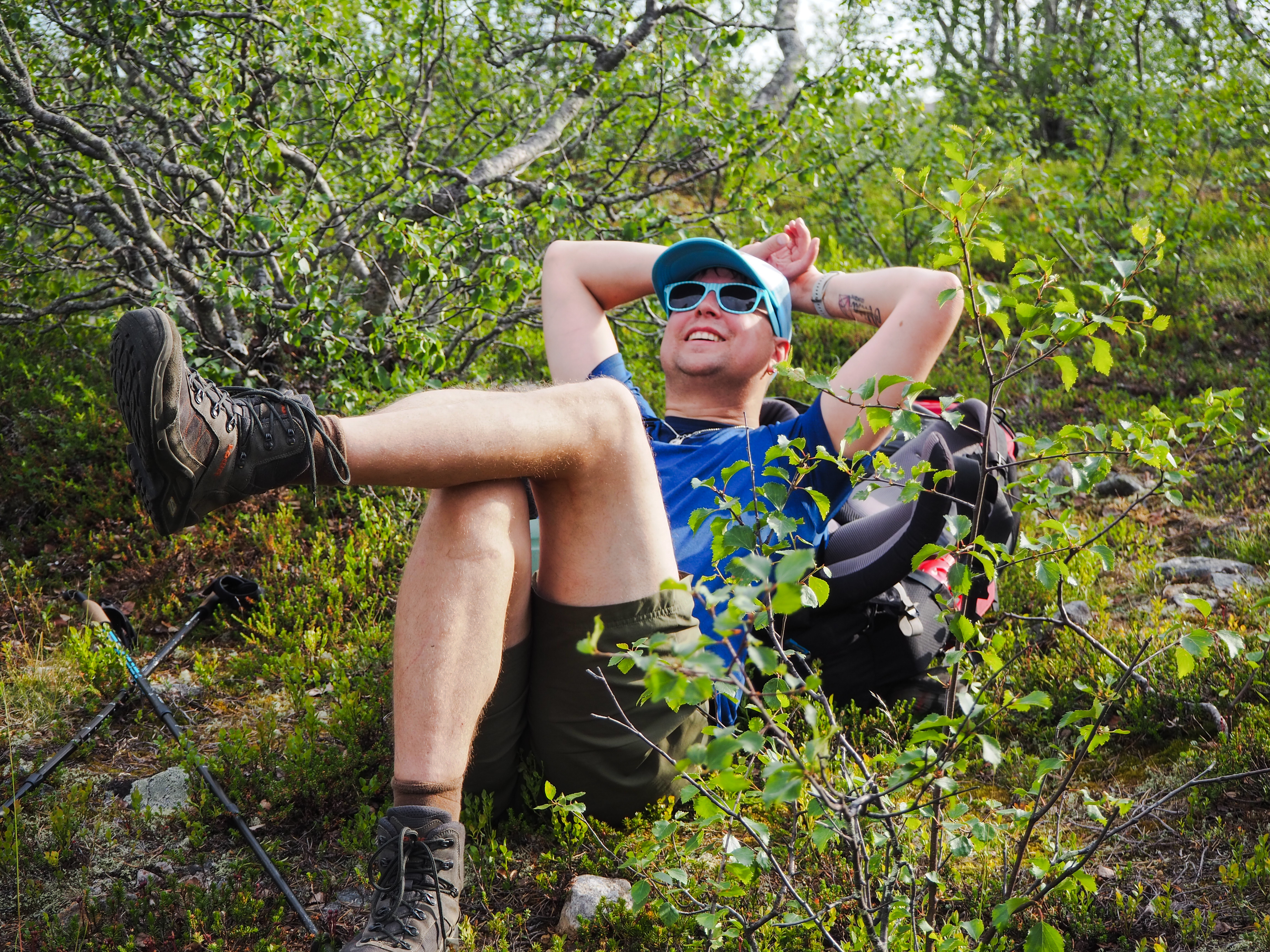 Niilanpään päivätuvalla pidimme proteiinipatukkatauon. Välipalan ja juomavesitankkauksen yhteydessä oli myös hyvä hetki levähtää ja nostaa hetkeksi jalat ylös.