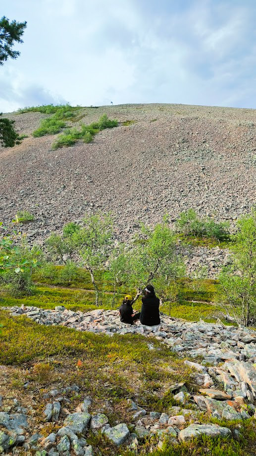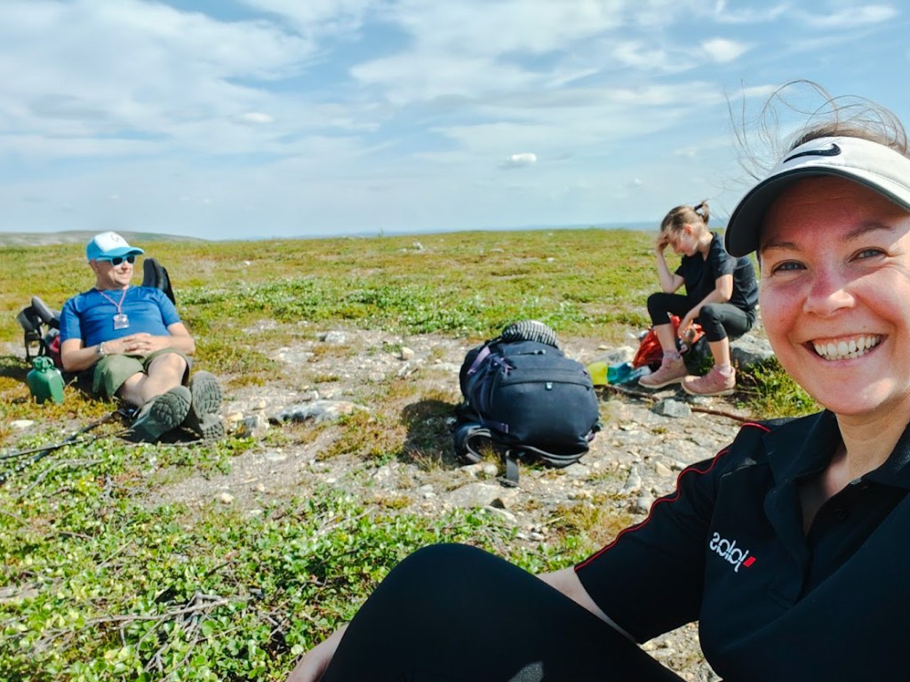 Syötyämme oli aika jatkaa matkaa ja palata Luirojärvelle, johon olimme jättäneet telttamme. Matka alas Sokostilta sujui huomattavasti joutuisammin kuin nousu eikä tullut niin hikikään. Joskin edelleen liikkuminen oli varovaista, sillä kivikossa todella piti katsoa mihin jalkansa asetti. Minä olen siitä erikoinen ihminen, että jos vaihtoehtona on jyrkkä lasku tai jyrkkä nousu, valitsen aina nousun. Olen sitkeä ja tarmokas nousija ja nousuissa minä yleensä vedän meidän letkaa edellä. Laskuissa puolestaan olen yleensä viimeisenä jonossa ja etenen muuta porukkaa hitaammin. Joten minulle nousuja kiitos! Mutta nyt siis oli kyseessä lasku Sokostilta alas kohti puurajaa, Jaurutuskurua ja samaa polkua pitkin läpi havumetsän ja kosteikkojen takaisin Luirojärven tuvalle. Päivälle matkaa kertyi noin 12 kilometriä.