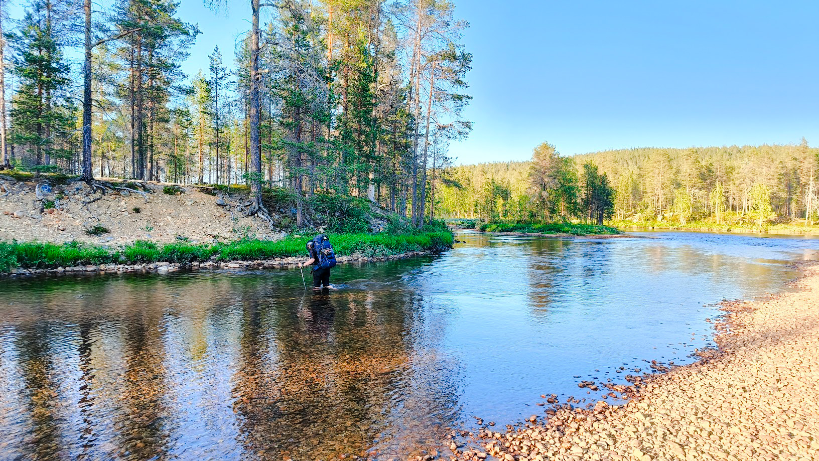 Jälleen kaunis, aurinkoinen, lämmin päivä tiedossa. Lämpöasteet olivat kuitenkin aavistuksen viileämmät kuin edellisinä kolmena päivänä, lämpötila oli ehkä +25 – +27 asteen tietämissä. Aamutoimien jälkeen kamppeet kasaan, teltan pakkaus, rinkat selkään ja menoksi. Päivä alkoi crocsit jalassa kahlauksella, sillä ylitettävänä oli jälleen Luirojoki, jonka ylitimme toiseen suuntaan jo Luirojärvelle saapuessamme. Helpon kahlauksen jälkeen istuimme vielä alas kuivaamaan jalat ja pukemaan sukat ja kengät jalkaan, crocsit pakattiin takaisin rinkkaan ja päivän matkan taittaminen varsinaisesti vasta alkoi.