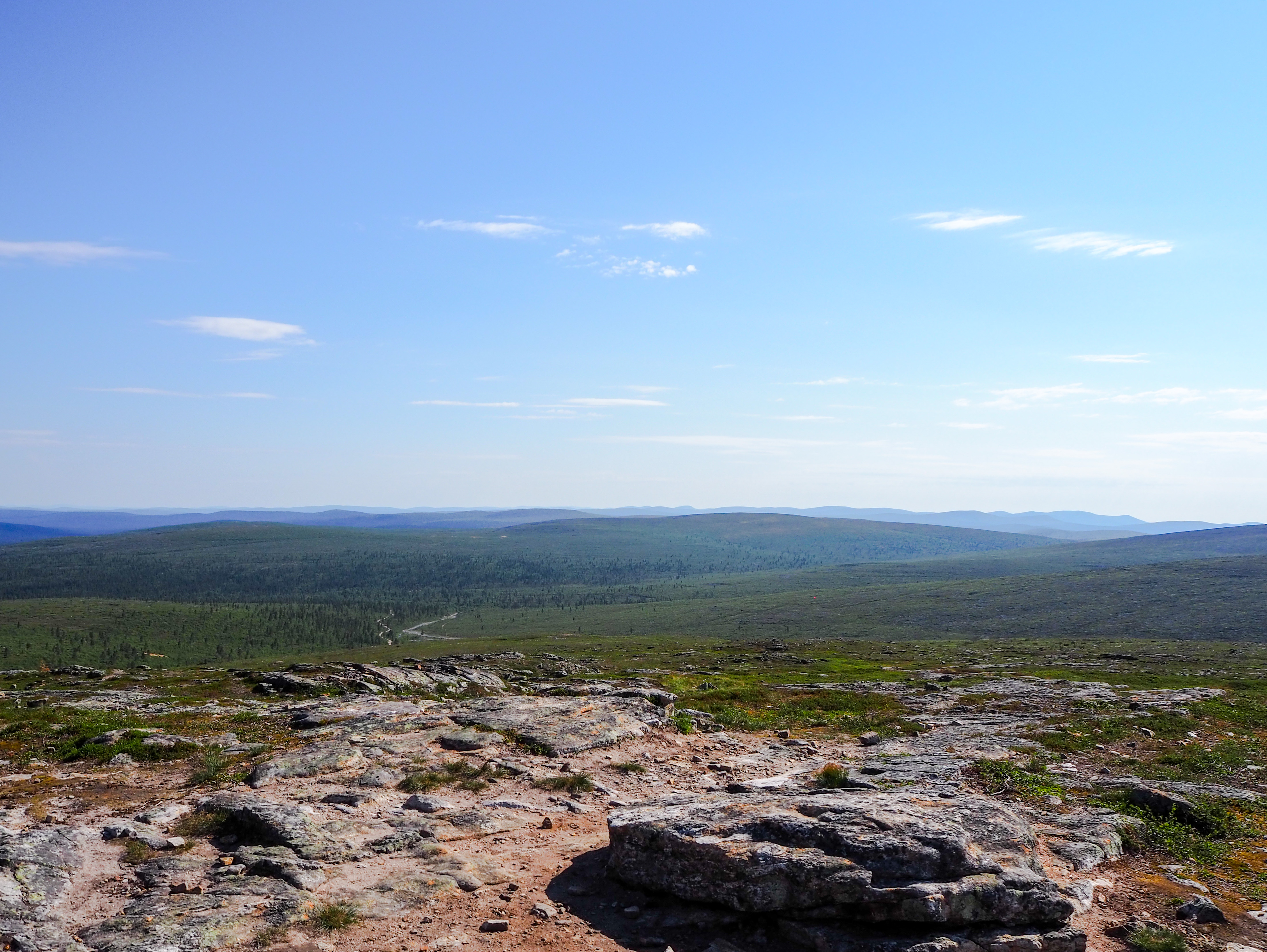 Kapuaminen kuitenkin kannatti, sillä maisemat Kiilopäältä ovat mielettömät. Matkaa oli taitettu vasta alle pari kilometriä, mutta näkymät joka suuntaan olivat mykistävän kauniit. Poutainen sää avasi maisemat kauas horisonttiin ja saimme esimakua siitä, millaisissa maisemissa tulisimme seuraavat päivämme viettämään. Herkistyähän siinä meinasi, kun mietin, että tämänkin elämä minulle nyt seuraavaksi tarjoaa.