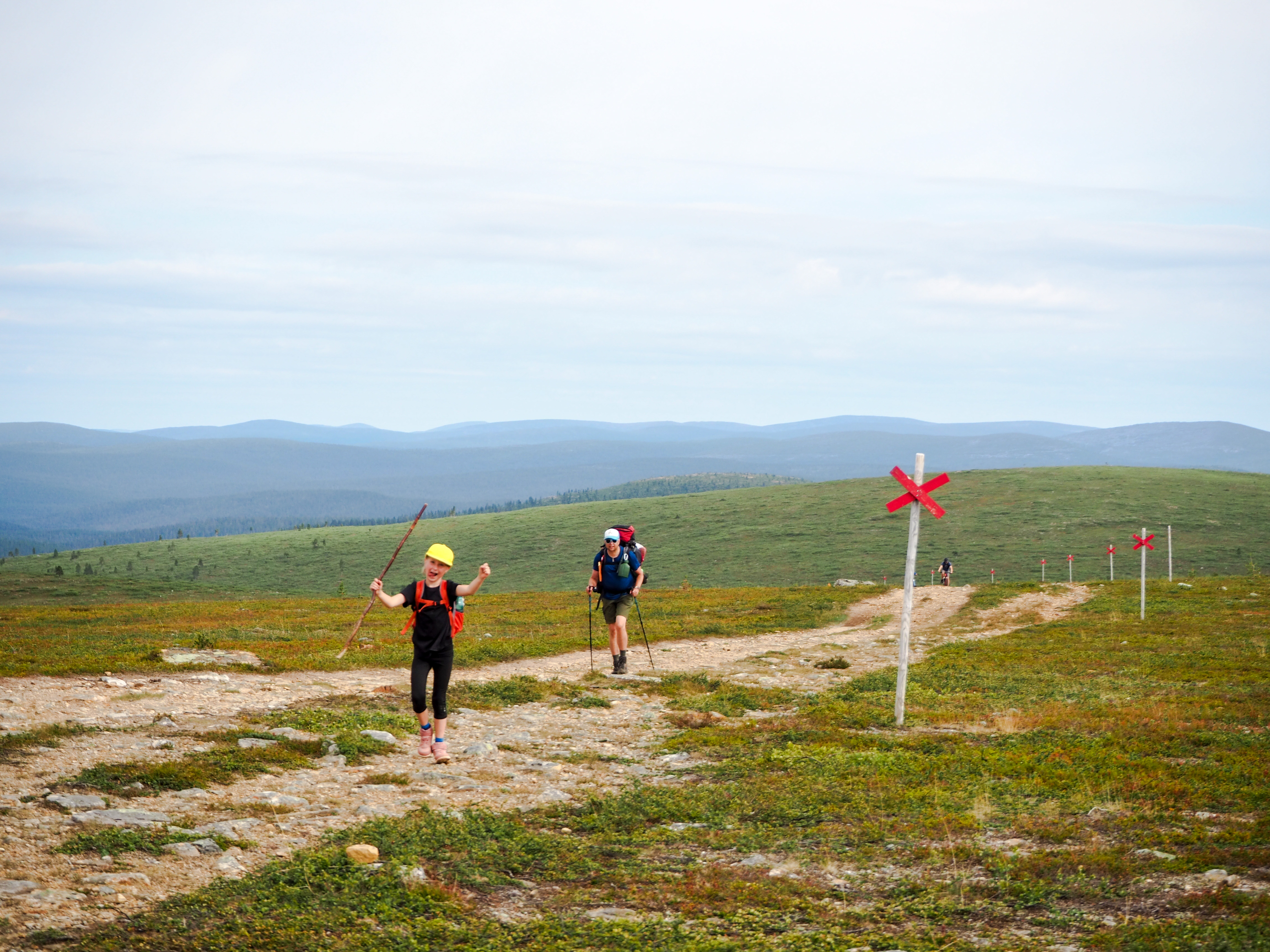 Itsellä haasteellisesta päivän aloituksesta huolimatta lounaan ja lepohetken jälkeen oli kuitenkin näissä nousuissa todella kevyt askel. Painavasta rinkasta ja monen kilometrin nousuista huolimatta pätkä Niilanpään tuvalle eteni helposti hyvää vauhtia. Ylämäissä tunsin liitäväni ja välillä oli jopa olo että tässähän voisi pistää vaikka juoksuksi. Rakastin näitä nousuja.