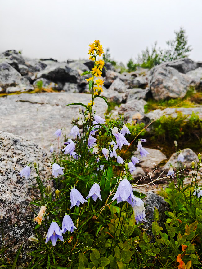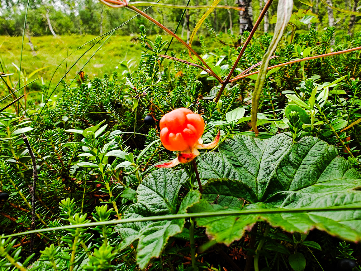 Selätettyämme jyrkimmät alamäet ja avomaisemien muututtua jälleen koivumetsiksi huomasimme polun vieressä metsäisen mätäsmäisen kosteikkoalueen, jossa kasvoi lakkoja. Lakat olivat kypsiä, kultaisia, pulleita ja makeita. Poimimme lakkoja ja söimme niitä suoraan mättäiltä. Mikä piristys ja mielen virkistys se olikaan raskaiden nousujen ja laskujen jälkeen ja maisemien vuoksi hieman alavireisen reissun päätteeksi. Emme meinanneet malttaa jatkaa matkaamme lakkojen luota lainkaan, mutta lopulta saimme itsemme taas liikkeelle.